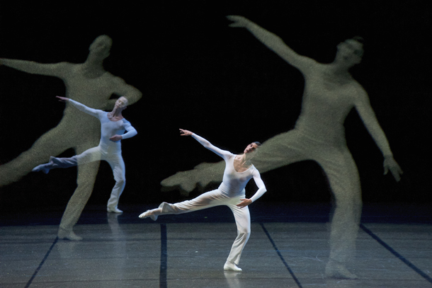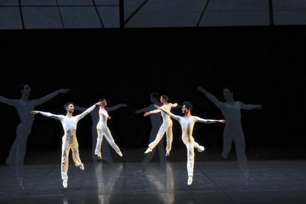Tout autre est le sentiment offert par Dance, pur moment de jubilation partagée sur scène et dans la salle. Lumière, cette fois, irradiant des danseurs en maillots et pantalons blancs, qui traversent le plateau en grands jetés, de cour à jardin et réciproquement. Lumière, encore, que la musique répétitive et hypnotisante de Philip Glass, qui accompagne ces sauts infiniment rebondissants. Lumière, enfin, de l’éclat retrouvé du film-décor, réalisé avec un soin infini par Marie Hélène Rebois, documentariste et spécialiste des films de danse, qui a plan par plan reconstitué les images de Sol Le Witt. Voir sur l’écran les danseurs lyonnais, avec leur fougue et leur virtuosité, en exact écho à leur présence scénique, rend au chef d’œuvre de Lucinda Childs toute sa force originelle. Le solo de la deuxième partie, interprété par Noëllie Conjaud, est une merveille tant elle sait faire siens les mouvements jadis imaginés pour elle-même par Lucinda Childs. Et la troisième partie, où se multiplient les figures, lignes et tracés dans l’espace, semble soulever littéralement du sol les danseurs, laissant le public en apesanteur. Ebloui et heureux.