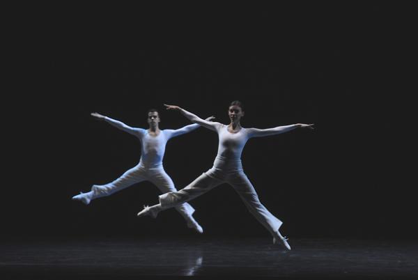 Ouverte avec Winterbranch, la soirée passait successivement de l’ombre à la lumière. Ombre austère du plateau, conçu par le plasticien Bob Rauschenberg comme une scène nocturne en bordure d’autoroute, balayée de phares de voiture. Ombre projetée des silhouettes des danseurs, vêtus de noir, qui arrivent, tombent et sont transportés immobiles hors de la scène. La partition de La Monte Young, stridente et métallique, accentue encore l’impression d’un monde impersonnel, où les chutes des interprètes ne sont autres que l’expression de phénomènes mécaniques dénués de sens. Incomprise à sa création, la pièce frappe aujourd’hui encore par sa radicalité, à mille pieds au-dessus de tous les ersatz vus depuis. Mais si les codes de son écriture nous sont aujourd’hui plus familiers, elle laisse néanmoins souvent le spectateur à la lisière de cet objet chorégraphique non identifié.