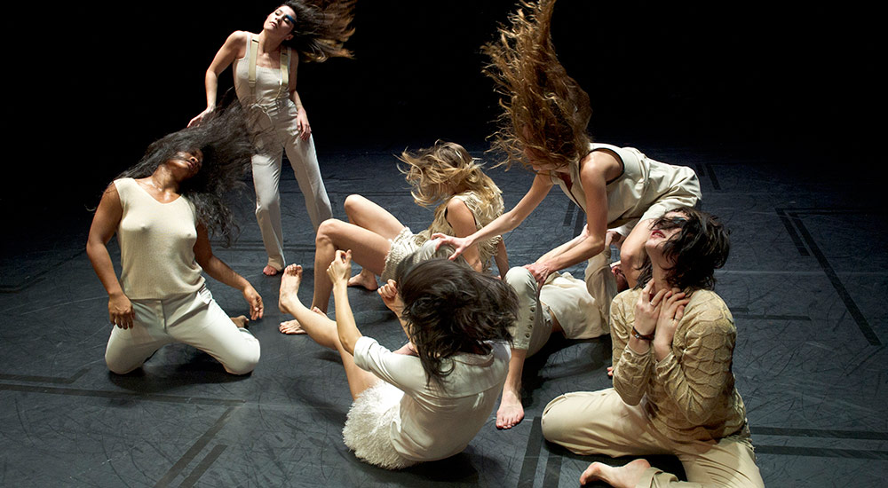 Si le spectacle commence par une sorte de séance d’entraînement paramilitaire, en unisson de guerilleras, on comprend très bien que toutes les images sensuelles qui s’ensuivent ne sont que concédées pour mieux se les approprier. Celle du Bain Turc d’Ingres en découle de la manière la plus organique qui soit. Un changement d’attitude et de lumières suffit.