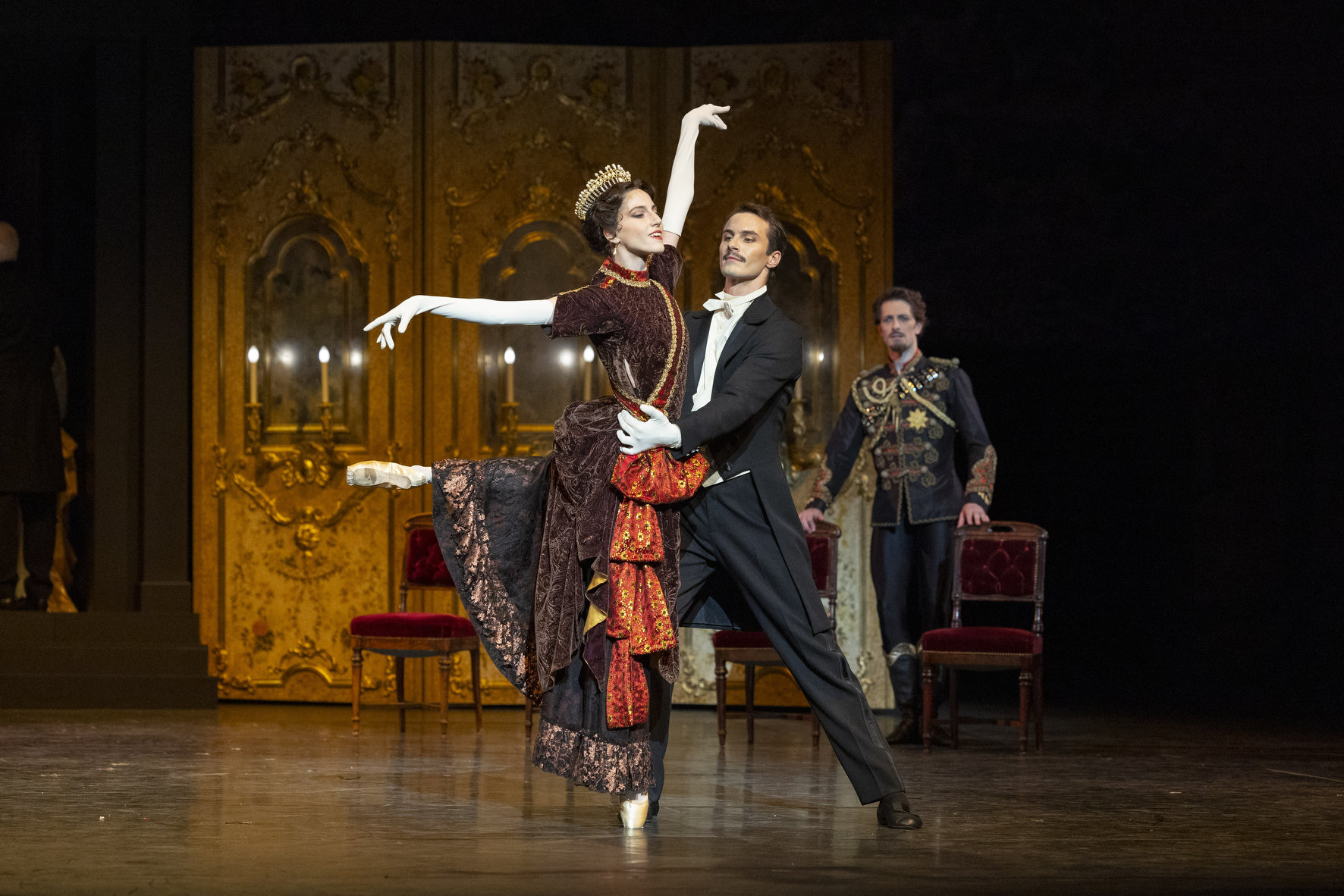 L’entrée, en ce mois d’octobre qui marque les trente ans de la mort du chorégraphe britannique, du ballet au répertoire du Ballet de l’Opéra de Paris n’appelle pas les mêmes qualificatifs. Il ne manque pourtant ni un accessoire ni un bouton de guêtre aux décors et costumes empesés de Nicholas Georgiadis, soigneusement réalisés à l’identique par les ateliers de l’Opéra de Paris. L’intrigue est bien évidemment respectée à la lettre, couvrant les huit ans séparant le mariage du prince Rodolphe, fils de « Sissi » et de l’empereur d’Autriche François-Joseph, de sa mort huit ans plus tard et celle de sa maîtresse Mary Vetsera, par double suicide présumé, dans le pavillon de chasse de Mayerling. On retrouve, de même, les fameux pas de deux hyper-acrobatiques qui nourrissent depuis des décennies la réputation d’une œuvre jamais vue sur les scènes françaises. Toutefois, à lire les phrases enthousiastes du critique anglais, on se prend à douter d’avoir vu le même spectacle.