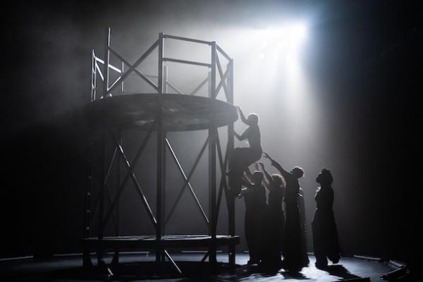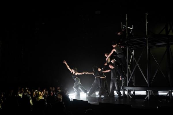 Dans cette forme inattendue, le public se tient debout et entoure une aire de jeu à plusieurs plateformes, liées par des échelles. Huit danseuses et danseurs forment un cercle et pourtant chacun se tient en bord de scène, face au public comme pour un bain de foule.