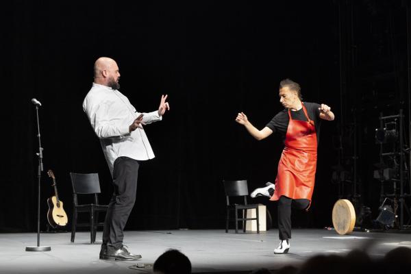 Le duo Galván-Elche regorge d’allusions à l’époque artistique d’il y a un siècle, comme aussi en chantant et dansant en hommage à La Malena (Magdalena Seda Loreto, 1877-1956), danseuse de la même époque. La danse flamenca est selon Galván un enfant de cette époque à l’industrialisation galopante. D’où quelques brillants jeux d’automate qui ponctuent le spectacle, et autres face-à-face ludiques où le flamenco surgit en onomatopées et en claquant des doigts. Un dernier cante : Viva Sevilla ! . Ce qui est alors aussi sincère et enthousiaste qu’ironique.