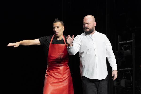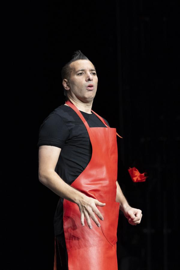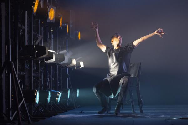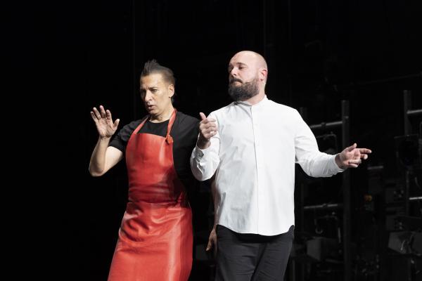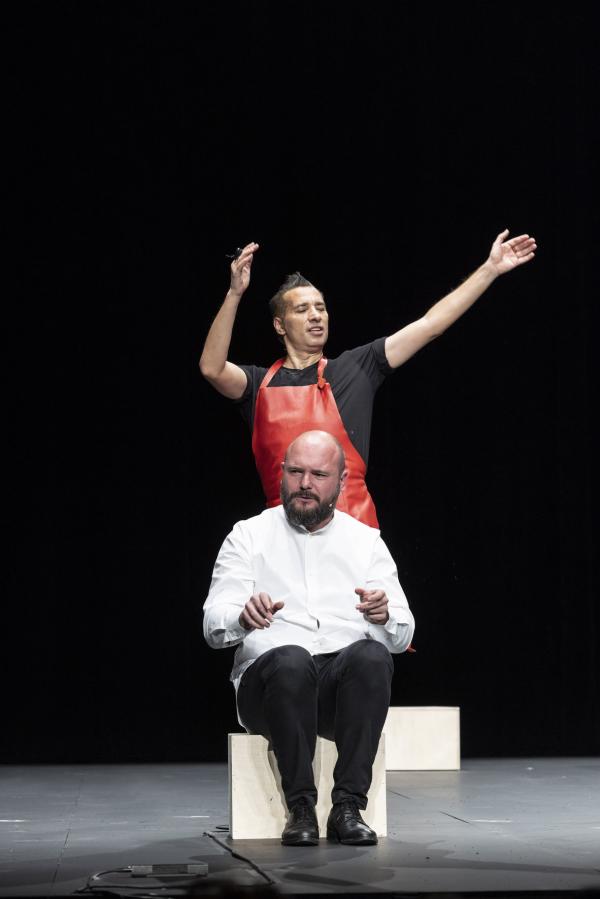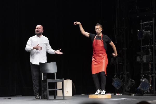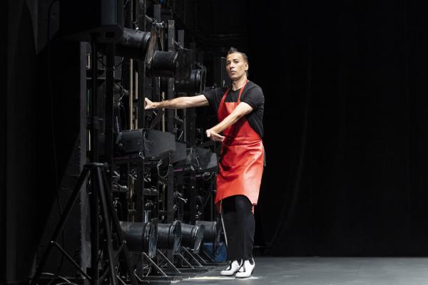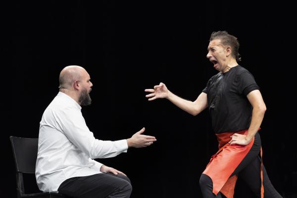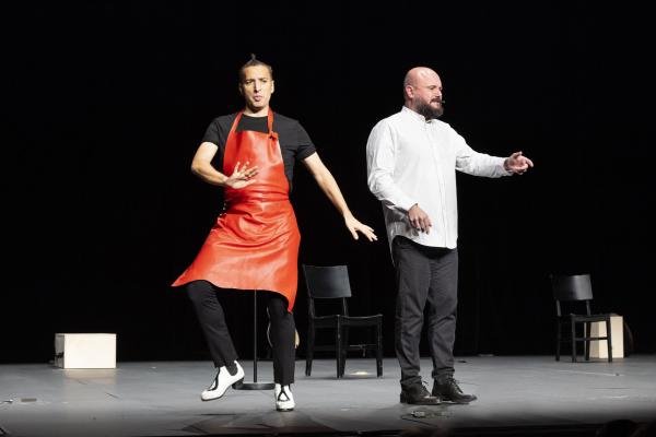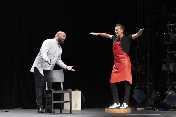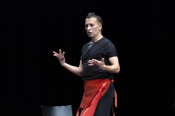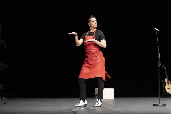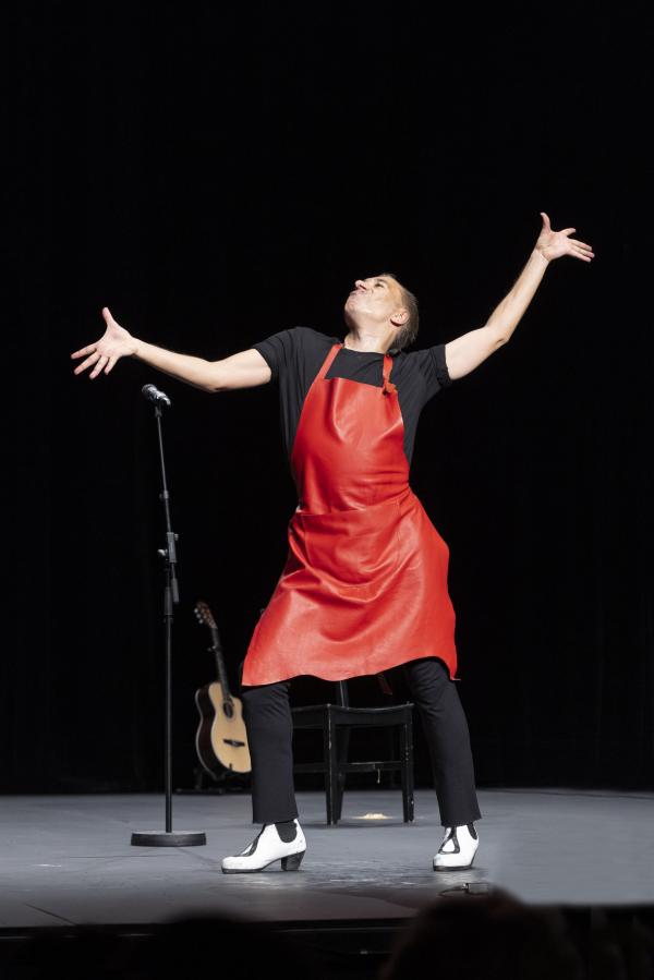 Aussi au premier tableau, Niño de Elche tente de se faire entendre, mais le zapateado de son partenaire écrase les paroles. Les mots sont ceux de l’écrivain espagnol Eugenio Noel (1885-1936) qui milita non seulement contre la guerre mais aussi contre la tauromachie… et contre le flamenco ! Et c’est lui qu’on cite dans un spectacle de flamenco ? Voilà tout l’esprit farceur de Galván qui retourne tout comme un gant, à commencer par ses bras et ses jambes.