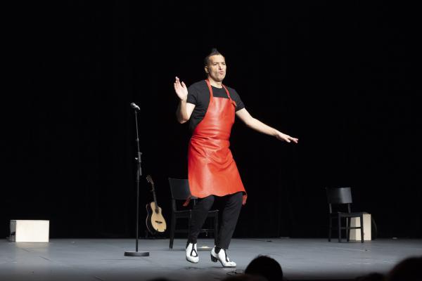 La petite veine androgyne est apparue dans ses personnages il y a quelque temps déjà, pour se préciser avec le temps. Elle n’a rien d’artificiel, ne doit rien à une idée de mise en scène ou une posture. Le voir après le spectacle, c’est se rendre compte qu’il est authentique. Et libre. Libre d’envisager le récital flamenco en mode collagiste et au second degré. En Niño de Elche il trouve pour cela le camarade idéal qui déconstruit le cante flamenco – selon le principe et titre de son album Antología del cante flamenco heterodoxo – comme Galván découpe et réassemble les motifs chorégraphiques. En décalé, à la Picasso.