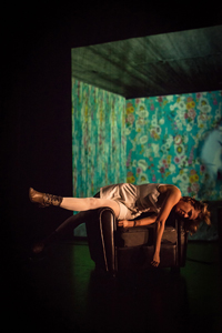 Que devient le désir, si fondamental et ancestral, dans un monde où l’être humain devient une sorte d’interface de différentes technologies? A la croisée des arts du geste, électroniques et visuels, la création partagée de Mollo et Jean-Baptiste Droulers, scénographe virtuel et interactif, marie avec bonheur le geste chorégraphique au geste virtuel. L’apport du dispositif interactif est ici clairement identifiable et devient un élément-clé de la dramaturgie.