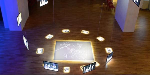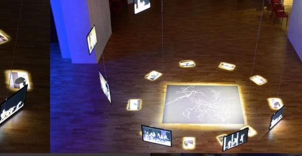 Pour la durée de l’exposition, l’original est plongé dans une lumière bleutée et veille, discrètement, sur l’espace et une installation circulaire, horizontale et verticale. Au centre de la chapelle se trouve, au sol, sa reproduction en négatif, comme dessiné en blanc sur un tapis de danse. Tout autour, comme dans un tombeau circulaire à la Stonehenge, un cercle de photos montre Trisha en pleine création de It’s a draw, au Théâtre du Hangar, le 1er juillet 2002. Au-dessus de ce making of s’élève un cercle de cadres, montrant les photos signées Laurent Philippe et Marc Ginot, des diverses pièces de Brown, crées ou montrées à Montpellier Danse. Une prouesse technique permet de montrer une photo différente de chaque côté, alors que les cadres sont illuminés de l’intérieur.