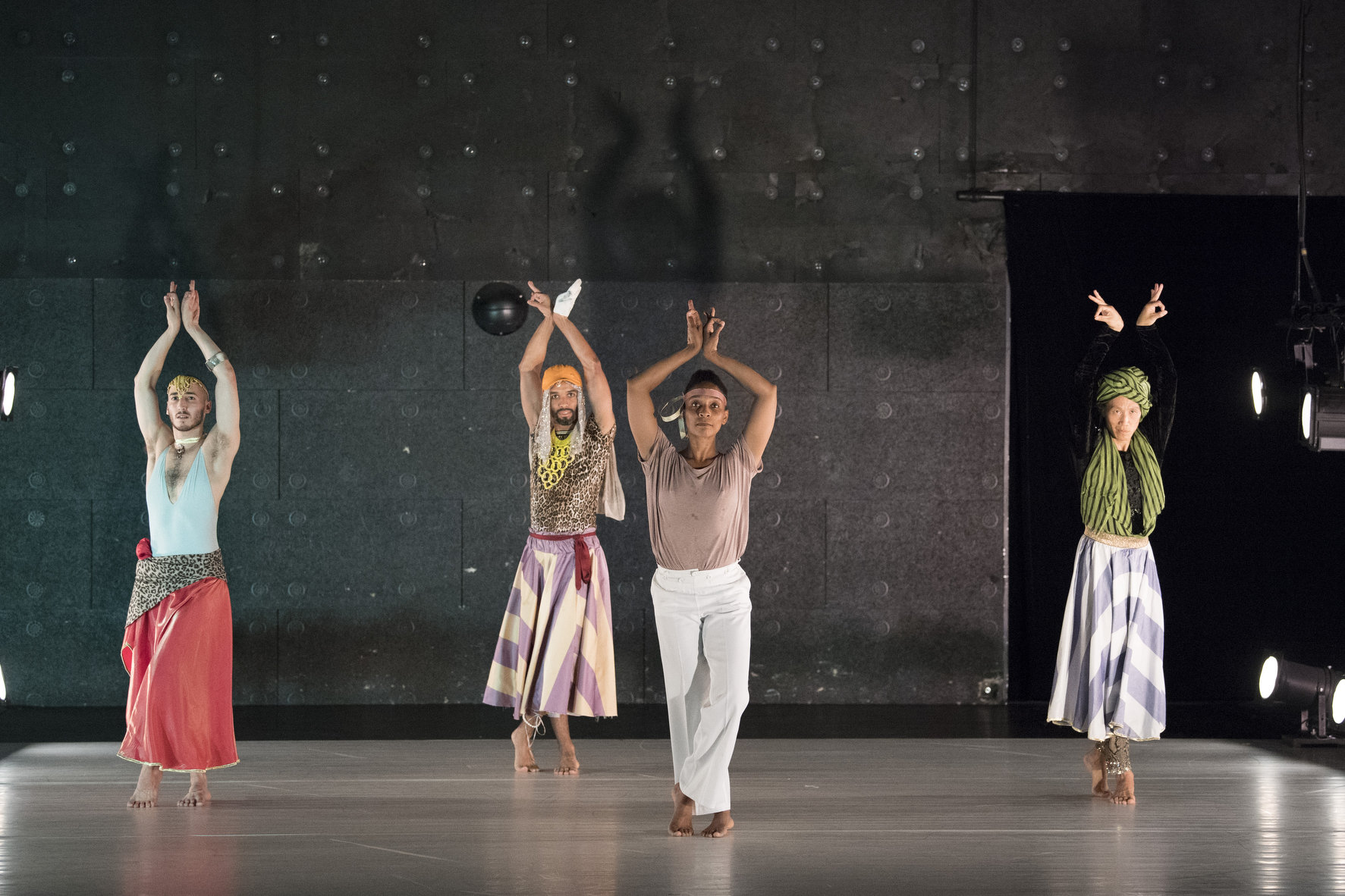 Où en serait la danse américaine aujourd’hui s’il n’y avait eu Saint-Denis et Shawn, avec leur passion pour les danses et les cultures indiennes et amérindiennes? C’est la question posée, et il va de soi que personne ne saurait y répondre. Nous savons seulement, sommairement, de quelle façon leurs recherches ont essaimé, aux Etats-Unis et au-delà. C’est dans cette optique que Moving Alternatives présente la danse comme un fait culturel universel, une joyeuse « appropriation culturelle » générale tissant sa toile à travers les continents. Les danses de Moving Alternatives nous baladent entre le sacré d’une adulation cultuelle (soli de Ruth Saint-Denis) et la danse guerrière de Kinetic Molpai de Ted Shawn de 1935, ajoutant l’universalisme du genre, grâce aux lumineuses transgressions de la masculinité par Pol Pi et Sherwood Shen. Les costumes très inspirés de La Bourette apportent à l’ensemble une touche farfelue et chaleureuse.