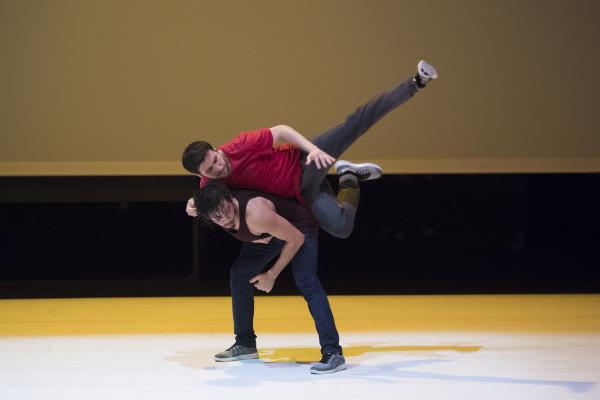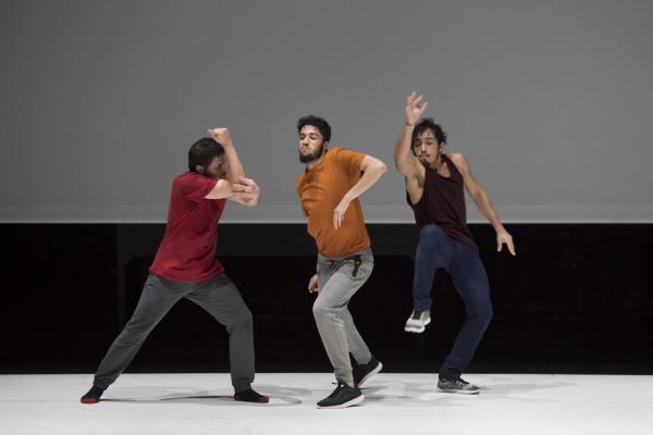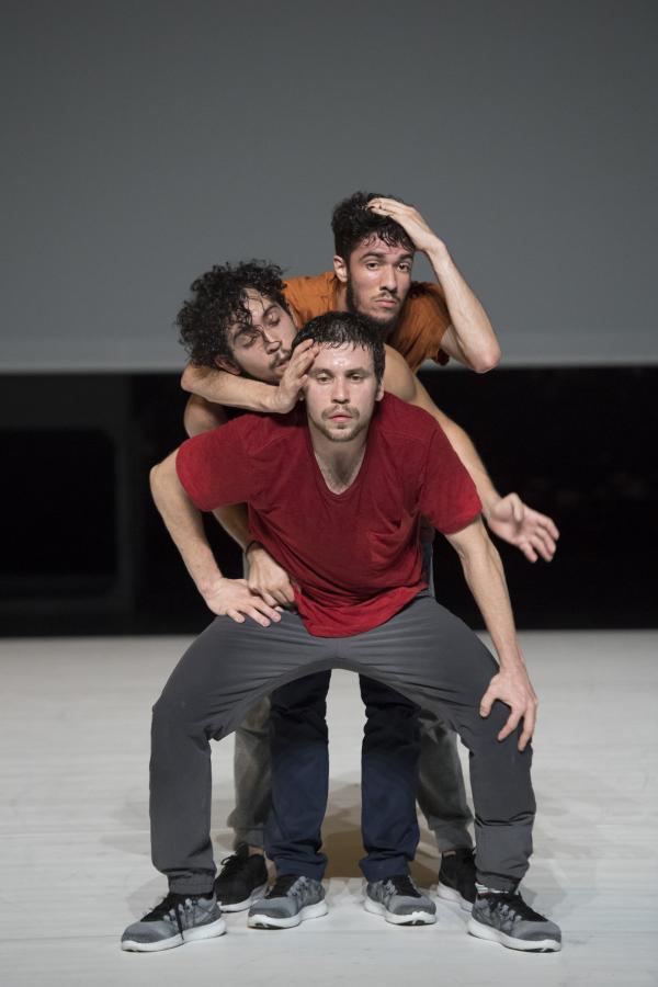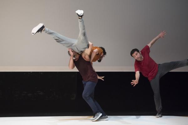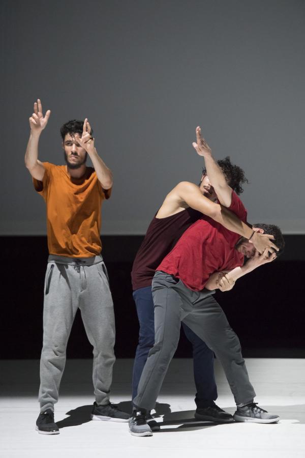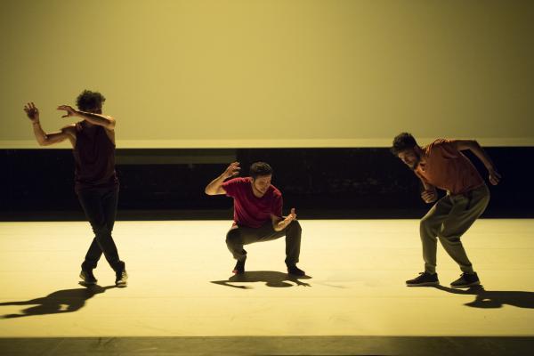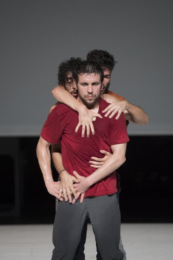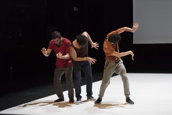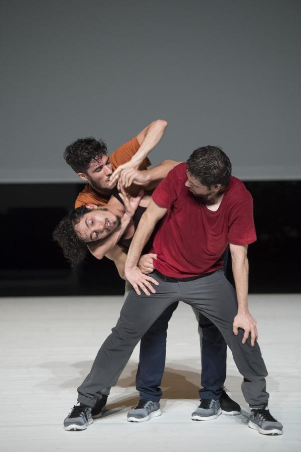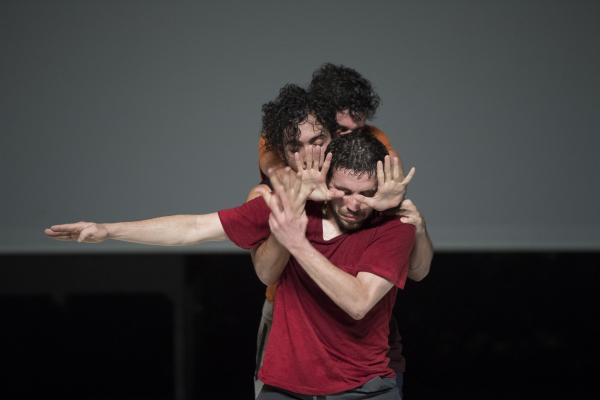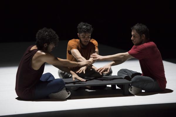 Du danseur solitaire qui se déployait en courbes acrobatiques, se dégage peu à peu une ombre qui admet dans son espace allongé d’autres ombres. Bientôt un bras se tend, un dos se plie, et les hommes s’approchent avant de se rejoindre, de se porter, peut-être, de s’empoigner et enfin de s’étreindre. Le spectacle est comme une traversée intérieure, mystérieuse et sensible.