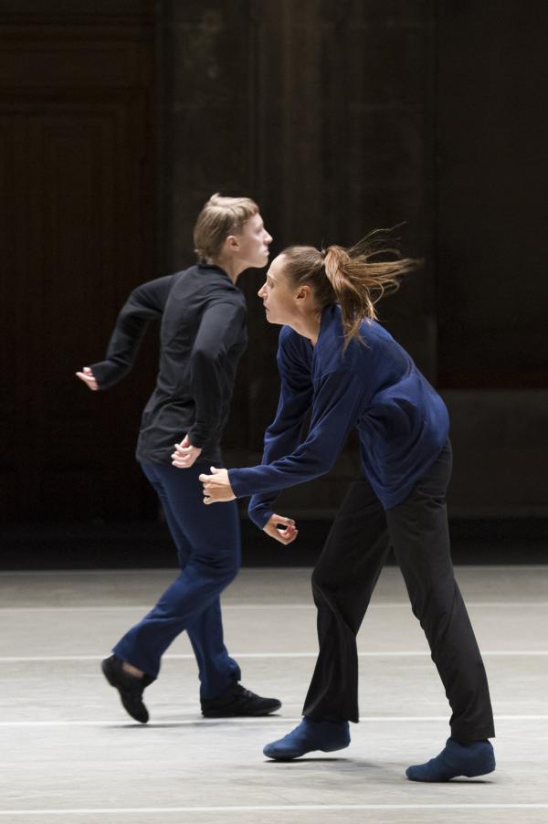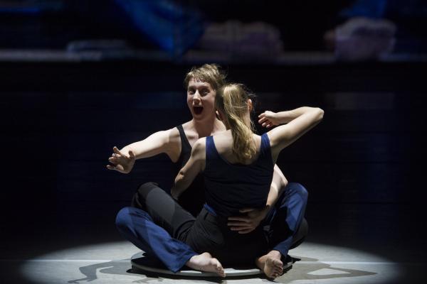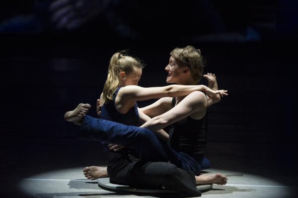 Chez cette chorégraphe multiprimée qui œuvre pour le nouveau cirque québécois le plus populaire qui soit, Eloize, les constellations géométrisées des interprètes mettent en orbite une grammaire du va-et-vient, de l’aller-retour. Elle alterne lenteur délicate, décélération subtile sur une partition musicale répétitive réalisée par un complice au long cours, le compositeur Louis Dufort. Elle marque en ses attaques tranchantes, électro, qui contribuent à électrifier les danseurs. Retour aux mythes des origines aussi dans ses déesses enlacées, tuilées qui rappellent une méditative approche à la fois tour à tour grotesque, sororale et fraternelle du corps en ce monde. Mais où l’on retrouve l’écho assourdi d’un duo féminin somnambulique, primitiviste de la version du Sacre du printemps que crée l’artiste en 1993.
