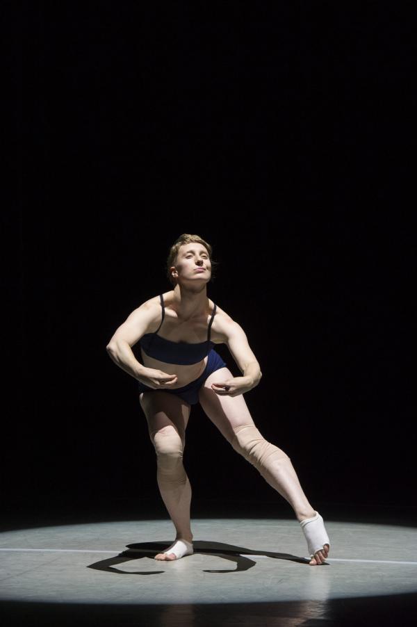 Ces marches claudicantes sont aussi une évocation des anatomies difformées de Body Remix/Variations Goldberg (2006). Des danseurs munis de prothèses tutélaires émancipant autant que formatant leurs mouvements de corps handicapés en autant de spasmes naufragés dans une beauté néoclassique fêlée. Béquilles différant la chute et insufflant un grand écart haletant et désespéré. Cordes, barres, harnais agrégeant deux jambes de danseuses, déambulateurs montés sur roulettes suscitaient un érotisme diffus ramenant au film Crash dû à Cronenberg et ses corps harnachés d’attelles repoussant les limites de désirs et douleurs inassouvis.