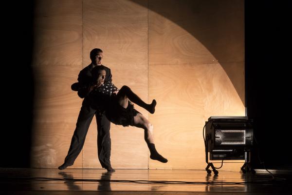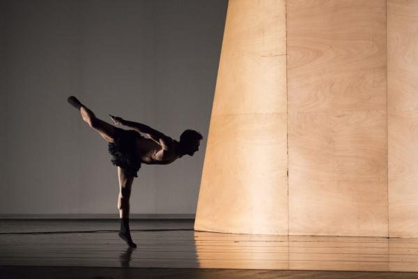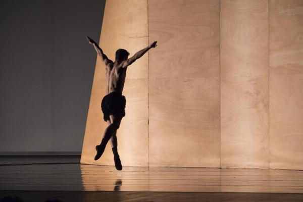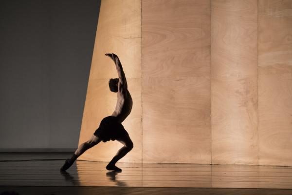 Toute géométrie est balayée par un mur ondulé qui occupe le centre du plateau. Les personnages évoluent à la marge, dans un espace nocturne sculpté et modulé par d’énormes projecteurs manipulés par les danseurs, découpant le sol et les murs en zones obscures et éclairées. S’y ajoutent quelques costumes étonnants, transformant le danseur en sculpture vivante à chaque saut ou pirouette.