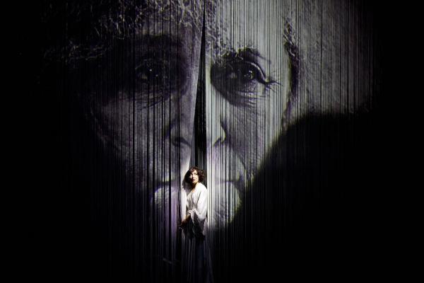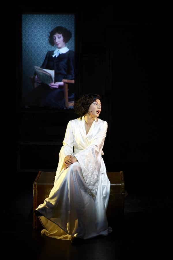 La comédienne-chanteuse Cléo Sénia, qui assure le rôle-titre, mise en scène par Léna Bréban, a relevé le défi de résumer en une heure et quart la vie d’une femme qui se fit connaître par sa plume (sous le nom d’emprunt de Willy, celui de son premier époux), mais aussi par ses prestations scandaleuses sur scène et sa bisexualité affichée dans le civil. Le monologue co-écrit par les deux jeunes femmes devient dialogue entre la protagoniste et son avatar – son héroïne Claudine qui lui apporta fortune et gloire – par le truchement vidéo, et les effets prismatiques créés par Julien Dubois et Jean-Christophe Charles qui tiennent lieu de déco. Il a bien fallu aux autrices faire des choix, et donc écarter des épisodes d’une ascension sociale et d’une œuvre foisonnante.