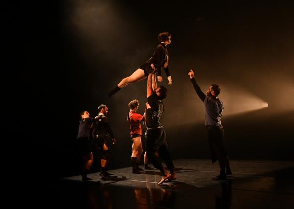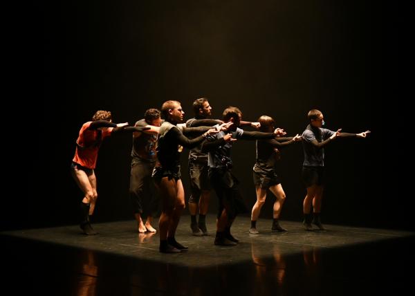 Les vagues allusions autour de la troublante vision qui a envahi son esprit ne permettent pas d’en retracer la nature. Mais ses rémanences chorégraphiques sont des plus concrètes. Sept chevaliers de fortune font leurs rondes sur le plateau, pendant cinquante-cinq minutes, à la poursuite d’un but commun, voire de plusieurs. Leur phrase chorégraphique, étroitement définie, puis répétée et variée à l’infini, galvanise les individualités, autant que la communauté.