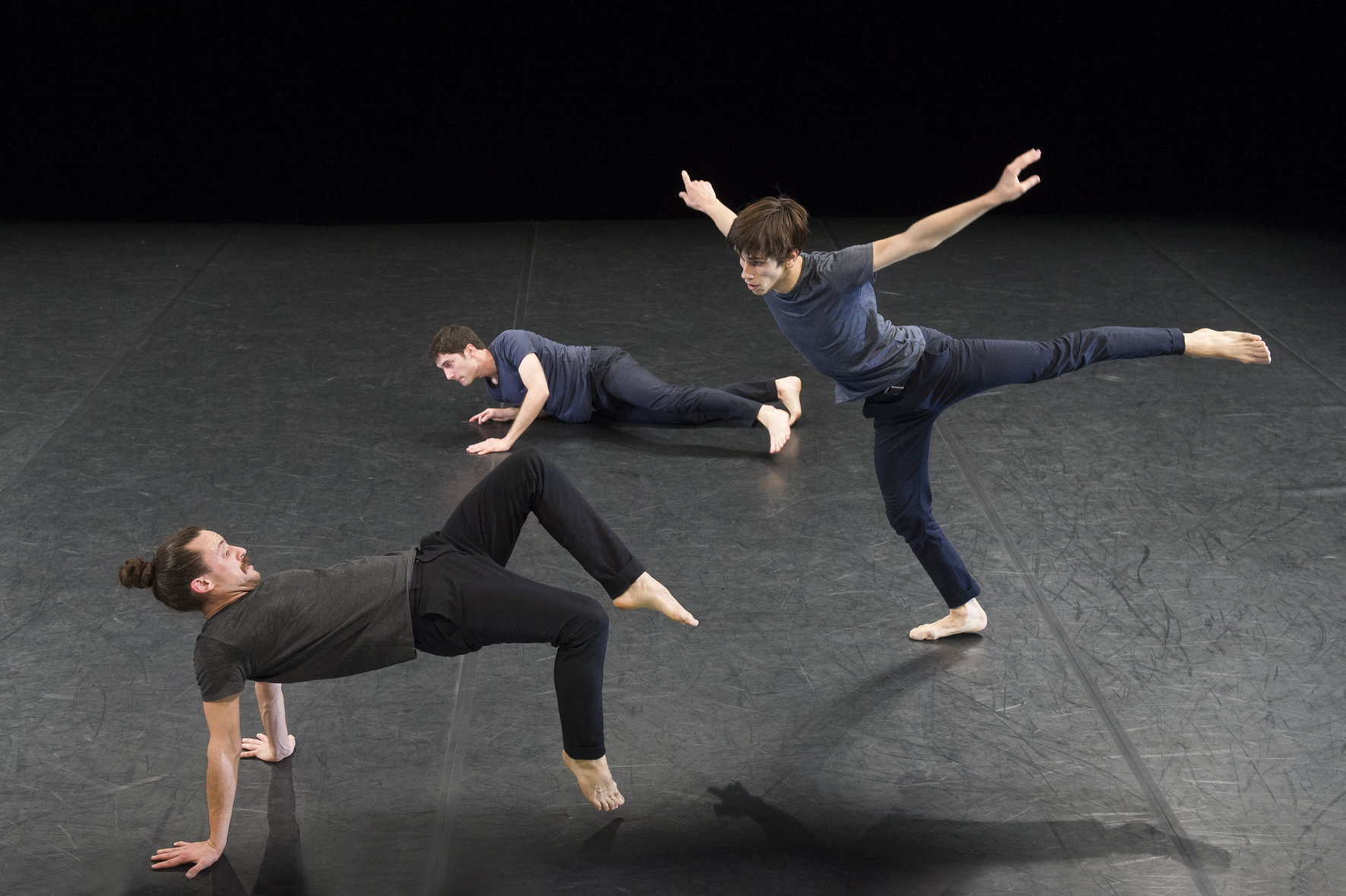 Le spectacle est donc une suite de mouvements plus ou moins abstraits, qui ressemblent souvent à des cas d’école. Ainsi, beaucoup de chutes et d’enchaînements à terre, sont repris en l’air, transposés sur d’autres plans. On peut également s’amuser à distinguer, dans certaines des actions proposées, la déclinaison de mots et de figures héritées du ballet classique : « jeté », « fouetté », « pointé » et même « ballon » sont ainsi sans cesse adaptés et déplacés, de leur sens le plus prosaïque, au pas codifié dans toute ses occurrences.
