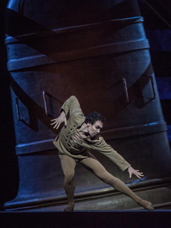 Les personnages sont campés d’emblée par les trois variations phares du ballet : Quasimodo, Frollo et Esmeralda. Si Quasimodo Nicolas Le Riche est juste parfait dans "la Fête des fous", à la fois émouvant et inquiétant, grimaçant, claudiquant, mais avec quelque chose de suffisamment robuste dans les épaules pour indiquer une puissance bafouée, Frollo, quant à lui, qui appelle ses ouailles à la prière, est un archidiacre tourmenté par le désir, ou plutôt par la pensée du désir. En cela la chorégraphie de Roland Petit est un vrai trait de génie qui fait tenir dans un seul geste de la main, la componction du personnage qui n’a d’égale que le déchaînement corporel qu’il retient. Et là, on regrette que Josua Hoffalt, un peu trop lyrique, manque un peu de ce tranchant incisif et de la tourmente intérieure qui irrigue Frollo d’une noirceur perverse et refoulée.