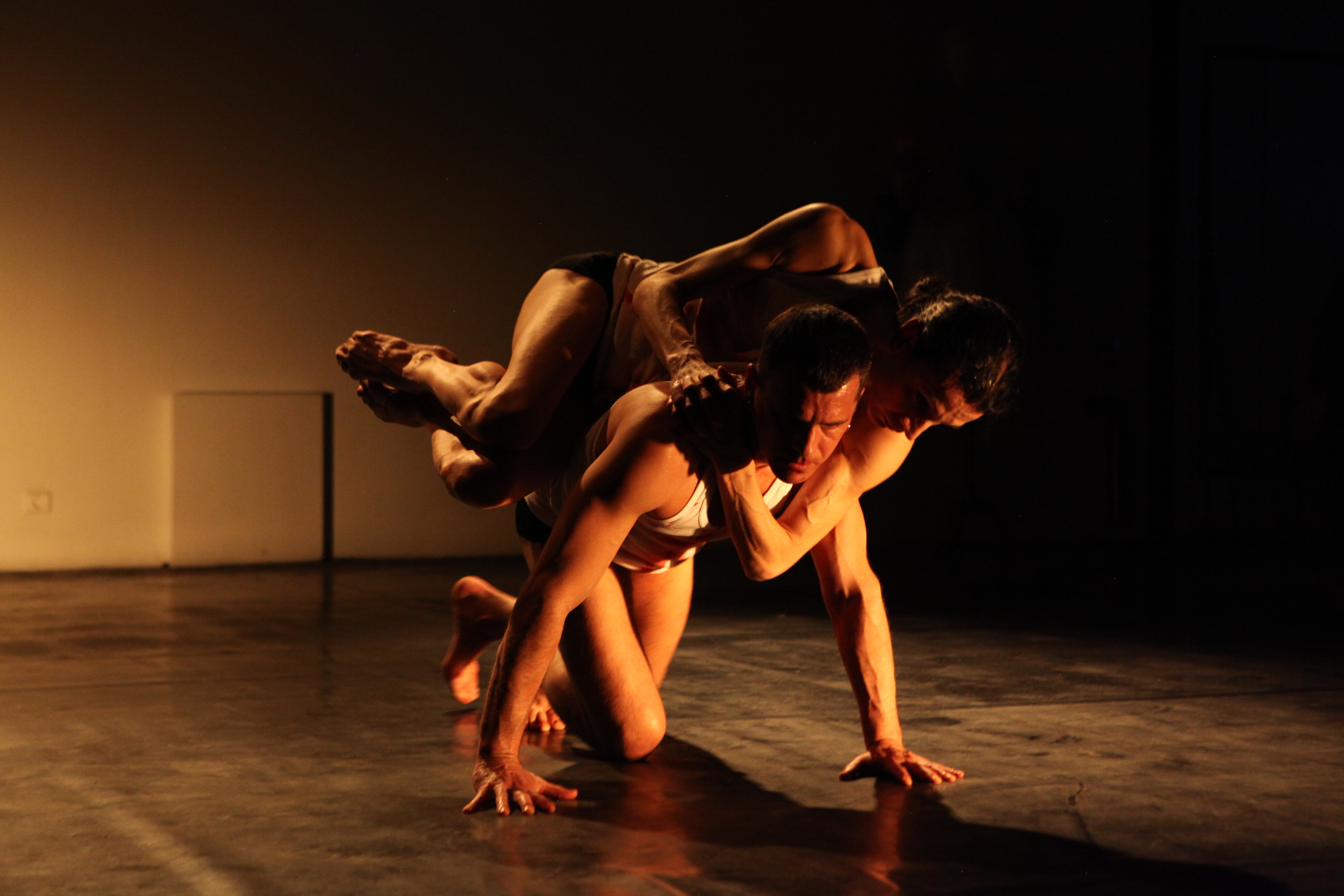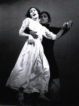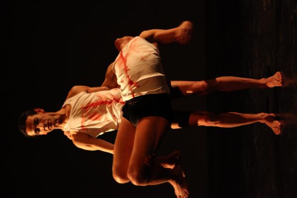 OH ! Contrairement aux apparences, il ne s’agit pas ici d’une exclamation mais d’une référence aux fondateurs du butô, à savoir Kazuo Ohno et Tatsumi Hijikata. Le point de départ de cette pièce est donc une photo où Hijikata danse avec Ohno, déguisé en femme. Dans cette image sont rassemblés les fondamentaux du butô à la fois rituel et sacrificiel qui allie la mort, l’érotisme, le travestissement et l’androgynie.