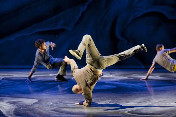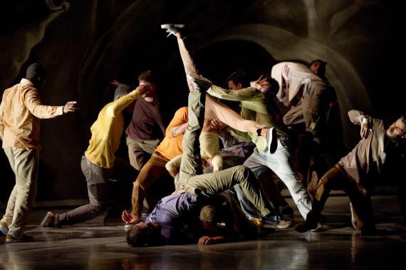 Sur un sol peint de volutes grises et glaise les danseurs d’Opus 14 s’élancent sur le plateau. Plus encore que les figures virtuoses, ce qui frappe d’emblée est la rapidité vertigineuse de ce hip-hop qui en met « plein la vue », avant de se retrouver dans un unisson impeccable, enchaîné sans ambages avec un solo tout aussi époustouflant. Opus 14, le quatorzième spectacle de Kader Attou ne se contente pas pour autant d’être une sorte de feu d’artifice hip-hop, mais un vrai travail sur l’écriture de cette discipline avec pour ligne de mire ce qu’il en reste quand on lui enlève tout le reste. L’enjeu n’est pas mince. D’autant que la chorégraphie – au sens strict du terme d’écrire la danse – s’attache tout autant à l’inscription dans l’espace que dans les corps. On peut donc suivre sur scène cette évolution dans la gestion du groupe, extrêmement bien menée, et dans la gestuelle qui mixe allègrement tous les codes du genre de façon très originale. Les désarticulations se font fluides, les prouesses jouent à se faire discrètes quand elles ne deviennent pas une nouvelle figure de groupe traité soudain comme un Corps de ballet !