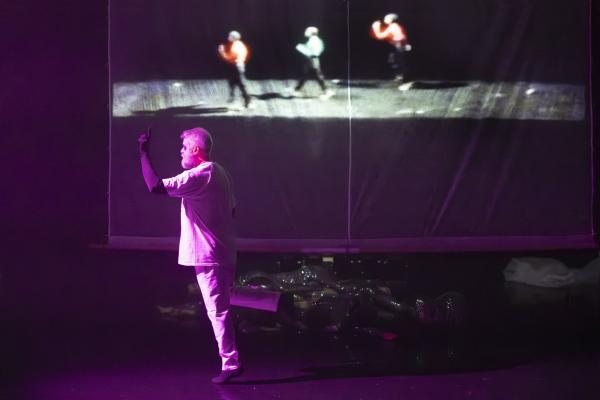 Lionel Hoche a eu l’idée du projet, en a imaginé la mise en scène et les costumes, complétés par des tee-shirts de Nordine Sajot portant l’inscription « I was here ». Ce slogan en néoparler insiste sur le fait que les interprètes principaux, les chorégraphes et danseurs Carlotta Sagna, Daniel Larrieu et Lionel Hoche lui-même, présents au plateau, comme on dit de nos jours, ont la double mission « d’habiter chaque seconde » et de remonter ou de remontrer les décennies que cet ici et maintenant contient.