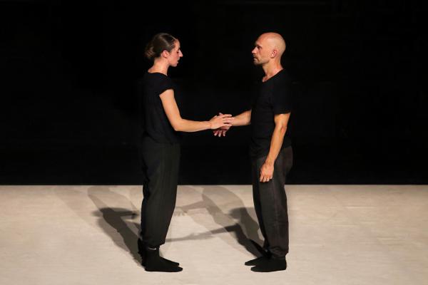 C’est ainsi qu’on pourrait résumer également We are nowhere else but here de Stephen Shropshire, interprété par la française Aimée Lagrange (au parcours très international) et le Finlandais Jussi Nousiainen. Créé en février 2017 au Korzo Theater de La Haye, ce pas de deux met à nu la relation entre deux personnes, dans un effort de sincérité, ici encore souligné par la nudité absolue des murs du Théâtre du Casino de Biarritz qui dévoilaient chaque tuyau, chaque trappe.