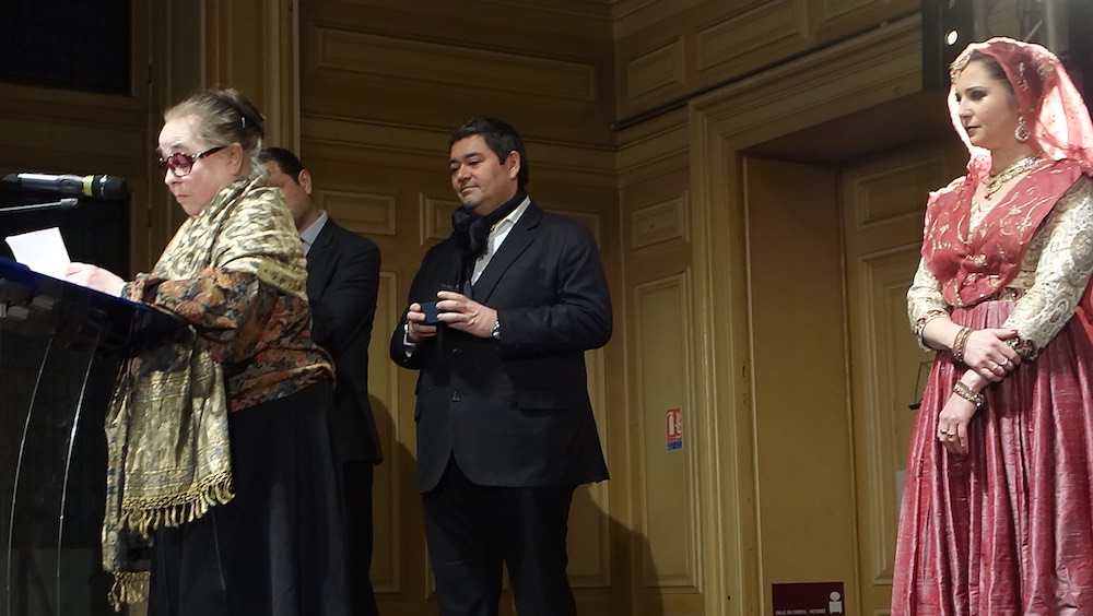 Milena Salvini a reçu du maire du 13e arrondissement, Jérôme Coumet, et de son adjoint en charge de la culture, Philippe Moine, au nom de la maire de Paris, la médaille de la Ville. A l’issue de la remise de décoration – et du diplôme l’attestant –, Isabelle Anna, danseuse de kathak de premier plan, a gratifié l’assistance d’une magnifique danse de cour du Sultanat de Lucknow.