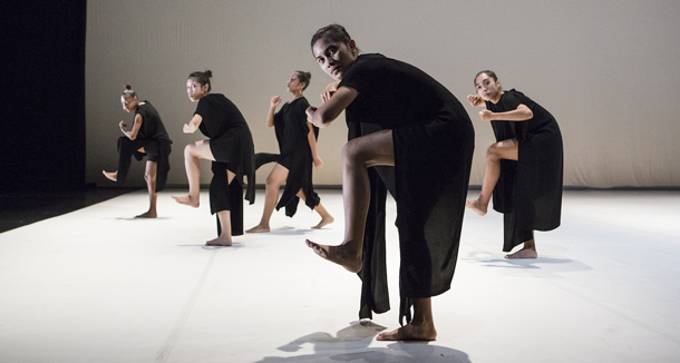 Supriyanto a lui-même été interprète chez Lemi Ponifasio, le chef spirituel samoan, chorégraphe de renommée mondiale et défenseur des sans-voix polynésiens [notre article et notre entretien]. Qu’a-t-il appris chez lui? « Il m’a fait comprendre pourquoi nous créons de la danse, ainsi qu’à travailler avec la culture, le rythme de la vie et les saveurs d’une île, et comment on travaille avec les gens d‘une communauté. » Comme les interprètes de Ponifasio ou les garçons de Cry Jailolo, les filles de Balabala n’étaient pas des danseuses professionnelles au départ. Elles représentent leur communauté, et avant tout sa part féminine, ou encore, les composantes « masculines » chez les femmes. Mais ce qui frappe plus que les unissons, les regards de bêtes ou de fantômes, plus que les tremblements collectifs et parfois la joie de danser, plus que les envols suggérés, c’est l’esprit collectif et totalement investi dans un rituel dont on mesure toute l’importance, même s’il ne s’agit plus de préparer les hommes à une bataille.