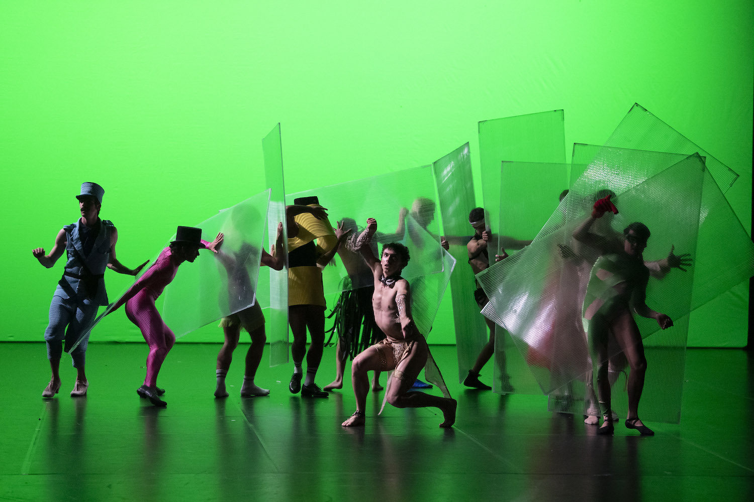 Une fois de plus, le duo de chorégraphes maison, Petter Jacobsson et Thomas Caley, a épaté la salle, et nous avec, par la vivacité de leur dernière pièce, entièrement dansée par des hommes, travestis comme des drag queens, rien qu’avec des éléments trouvés dans les carnets de dessin de Picabia. Celui-ci avait décliné son prénom tantôt en Francine, tantôt en Francisque, un peu comme son ami Duchamp, qui avait adopté le surnom de Rrose Sélavy. Mesdames et Messieurs est une version plausible car improbable de Cinésketch, la dernière soirée des Ballets suédois animée par Picabia au Théâtre des Champs-Élysées et de Dada, mis au rencart par le Surréalisme. La frénésie et l’inventivité du jazz, dans la version Jungle de Duke Ellington, comme dans celle quasiment free de Fess Williams – on pense au morceau stomp au titre allusif Playin my Saxophone dans l’enregistrement endiablé déniché par la sœur de Petter Jacobsson. Les nombreuses idées musicales trouvent leur équivalent visuel grâce au talent des chorégraphes, à l’énergie des danseurs, aux effets lumineux conjurant la couleur interdite dans le théâtre en France – le vert.
