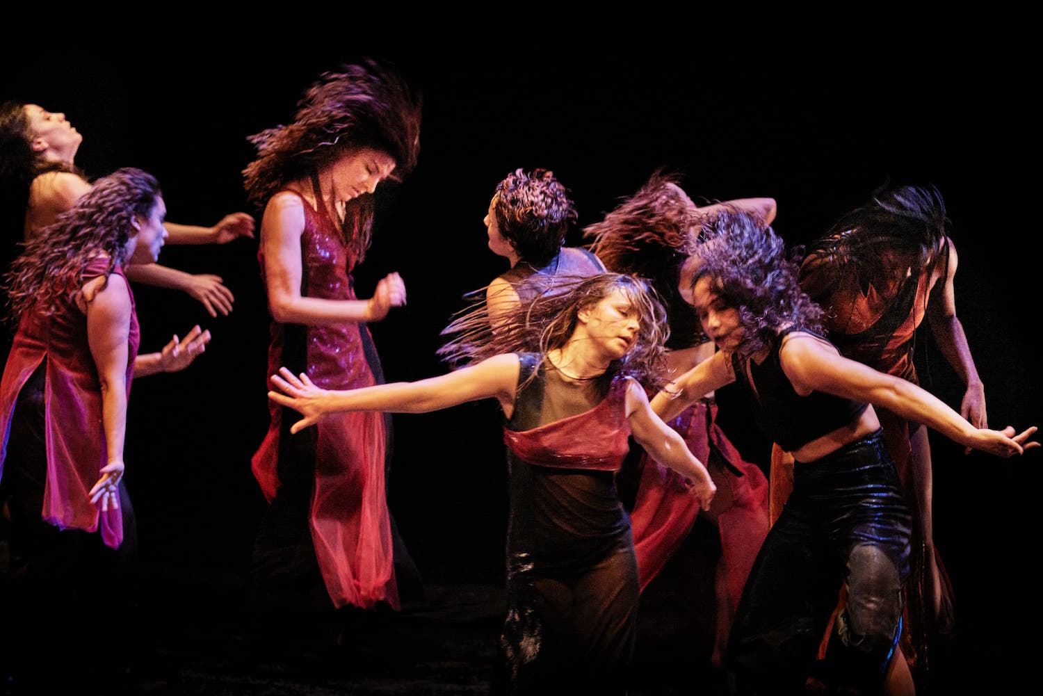Fouad Boussouf se souvient de la nuée de libellules qui tournoyait autour de lui, enfant, et lance dans une ronde permanente, quasi mystique, dix danseuses. D’abord dans le clair-obscur, puis dans la lumière, pour mieux en révéler la présence et la fièvre. Près du feu, la ruche bourdonne, puissante, elle brille au risque de se brûler les ailes…