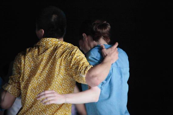 Emanuel Gat a repris et developpé pour cette nouvelle création les processus initiés avec The Suprising complexity of simple pleasures(http://dansercanalhistorique.com/2013/06/26/emmanuel-gat-a-montpellier-danse/) créé l’année dernière en présence d’un public attentif. S’il s’agissait alors simplement (si l’on peut dire !) d’un tissage assez complexe des phrases chorégraphiques amenées et animées par chacun des danseurs. Mais dans Plage romantique, l’écriture, tout en paraissant d’une limpidité extrême avec ses courses et ses dispersions, ses rencontres où soudain les regards se nouent et ses éclatements soudains, est tricotée encore plus serrée. Les gestes de l’un se répercutant dans le corps de l’autre. Et surtout, un rythme de ressac baigne la pièce, comme pour rendre hommage à un titre qui fut trouvé par hasard. (Lire encadré)