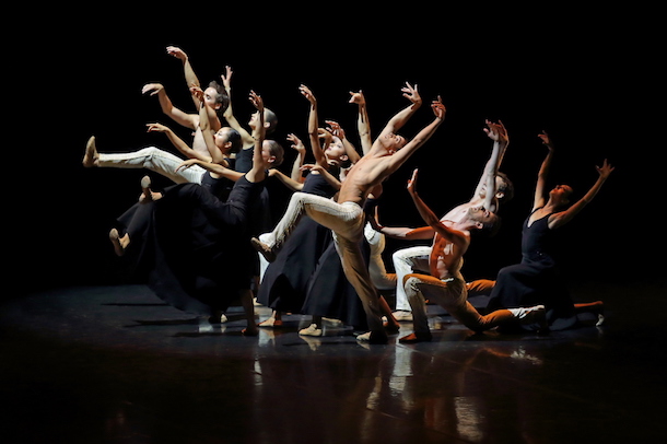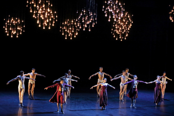 Pour finir, retour à la case divertissement avec Vespertine, pièce pour six couples où le jeune prodige britannique Liam Scarlett emprunte à l’univers et au vocabulaire baroques avec beaucoup de swing, de lyrisme, de légèreté et de fluidité. Sous des éclairages suggérant un feu d’artifice, Scarlett accentue les différences entre deux groupes - qui correspondent souvent aux genres. Les uns en sous-vêtements blancs, les autres en lourdes robes pourpres. Malgré de multiples aller-retours vestimentaires, la tentative de rencontre entre les groupes doit échouer. Mais les sentiments sont au rendez-vous, de même que la fusion avec la musique d’Arcangelo Corelli. Ici la danse est ronde et ample, produisant souvent avec une illusion de lévitation.