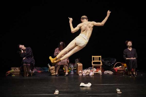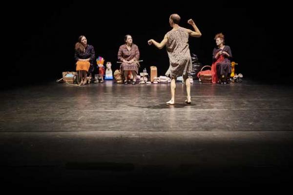 Dans leurs sonorités âpres et musicales autant que pour leur sens, les mots – en particulier ceux des dialectes des Pouilles et de la Sicile qui composaient l’essentiel des dialogues – jouaient dans la caractérisation des personnages un rôle certain. Toutefois le corps tenait ici une place centrale. Celui, informe ou soudainement séduisant des trois mères d’Arturo, mais aussi et surtout celui de ce dernier, qui pour être quasi muet et incapable de la moindre autonomie, n’en était pas moins intensément présent. Il faut saluer l’extraordinaire performance de Simone Zambelli, qu’Emma Dante a sollicité pour ce projet après l’avoir vu danser et après avoir le même jour, quelques heures plus tôt, vu dans un hôpital un petit garçon autiste tournoyant sur lui-même en riant.
