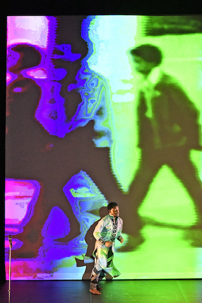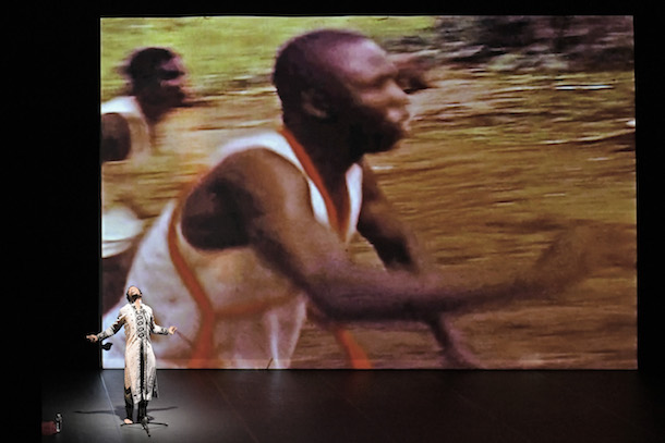 Entre deux fragments de discours, il danse - très bien - notamment sur des images projetées de danses traditionnelles, évoque son rapport au temps ou à la réincarnation. En final, il fait entendre un dernier et électrisant tube de Fela, invitant le public à le rejoindre sur le plateau et à danser. Pour résister ensemble, un message qui prend tout son sens à l’heure où le Tarmac, seule scène dédiée à la francophonie, sera liquidée en 2019 pour faire place au Théâtre ouvert…