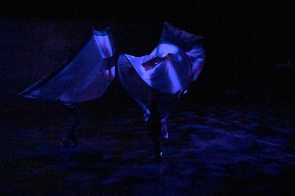 Comme si leurs corps étaient saisis par la tempête, leur désir, le plaisir et la violence de danser s’exprime de plus belle. Ils marchent, se déplacent rapidement, courent, s’espacent, se rejoignent et on semble entendre l’un d’eux chantonner très bas quatre notes du Boléro de Ravel. Mais comme ils adorent embrouiller les cartes, rien n’est certain. Pour autant, ils retrouvent une certaine folie en s’appliquant à orner ce mur scintillant en y scotchant leurs tentes aplaties ainsi que d’autres objets. Le résultat est magnifique, envoutant ! Est-ce enfin la liberté ?