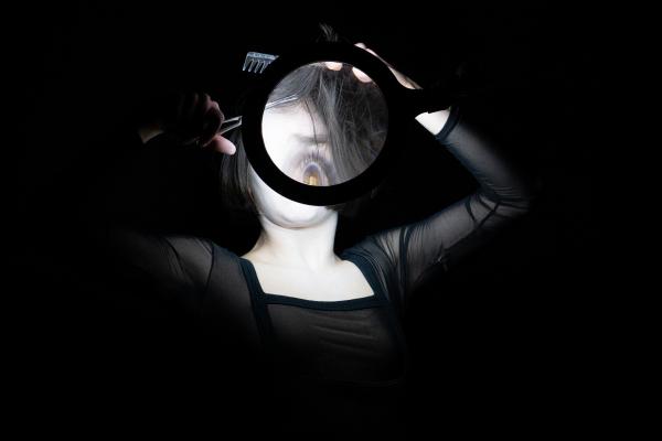 Si l’objectif d’un portrait est de nous amener vers la personne représentée, le quatuor de Journo démultiplie le model, créant paradoxalement une forme de distanciation, voire de dépersonnalisation. Et c’est justement ce qui rend cette étude si intéressante. A l’instar du model, la boîte noire du théâtre se fractionne et se démultiplie pour se substituer à l’outil visuel qu’est la camera oscura. Aussi on rentre dans une sorte de portrait de l’outil portrait, mis en évidence par l’outil théâtre, pour questionner l’objectivité de l’appareil photo, souvent déformant et réifiant tout en revendiquant une objectivité factice. Par exemple quand le dieu image crée la femme-objet, manipulée face à l’objectif.