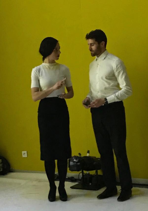 Sérieuses comme des papesses, les deux jeunes femmes, soutenues par leurs collaborateurs artistiques (le graphiste Grégoire Bellot, le musicien Léopold Frey, les vidéastes Hector Di Napoli et Nayan Ducruet, le chercheur Ignacio Avellino, la chercheuse en danse Sarah Fdili Alaoui, le danseur dandy et virtuose Patric Sean Gee-Hou Kuo), nous ont interprété un spectacle d’un nouveau genre, un mixte de conférence de marketing, de communication d’entreprise, de présentation audiovisuelle vantant un service, de « performance » ironique et de danse-théâtre d’agitprop.