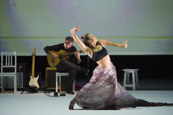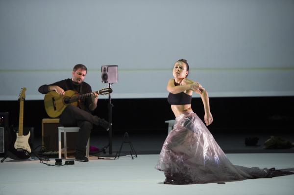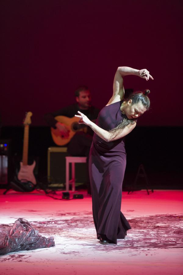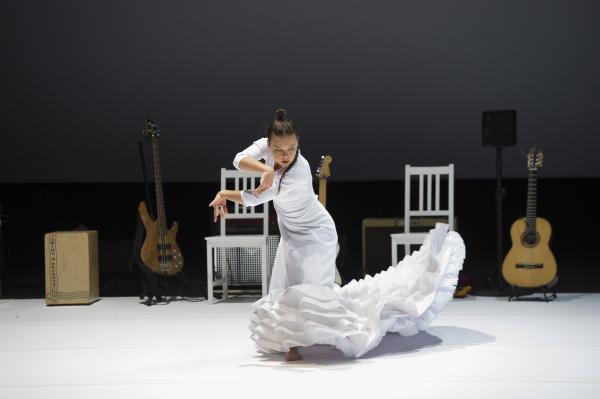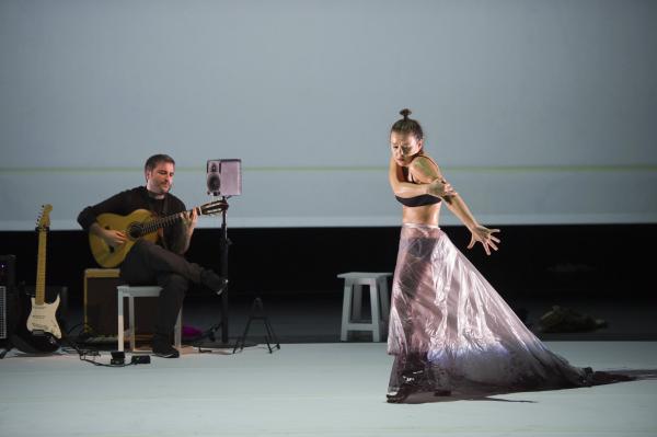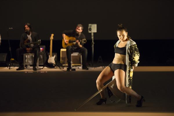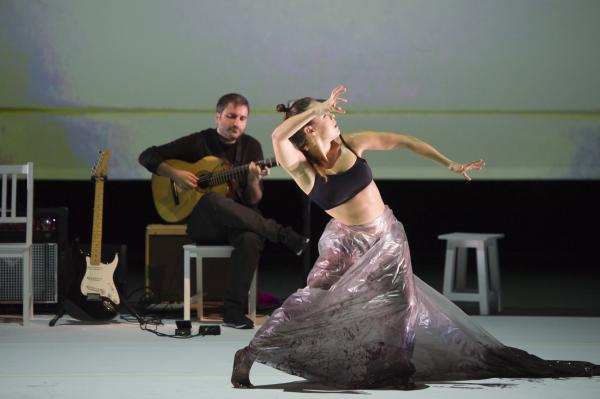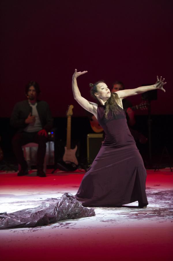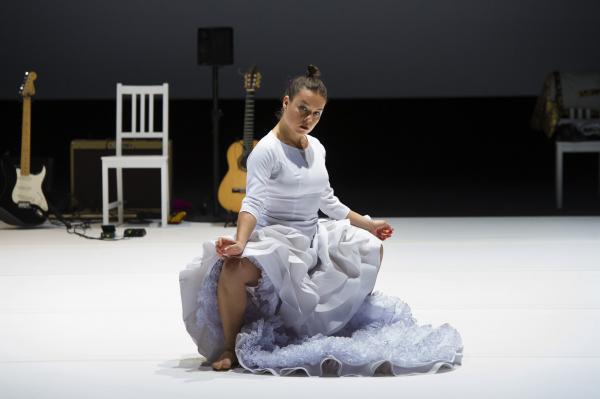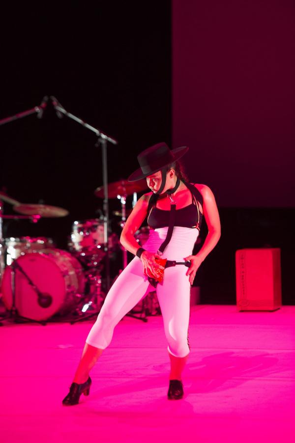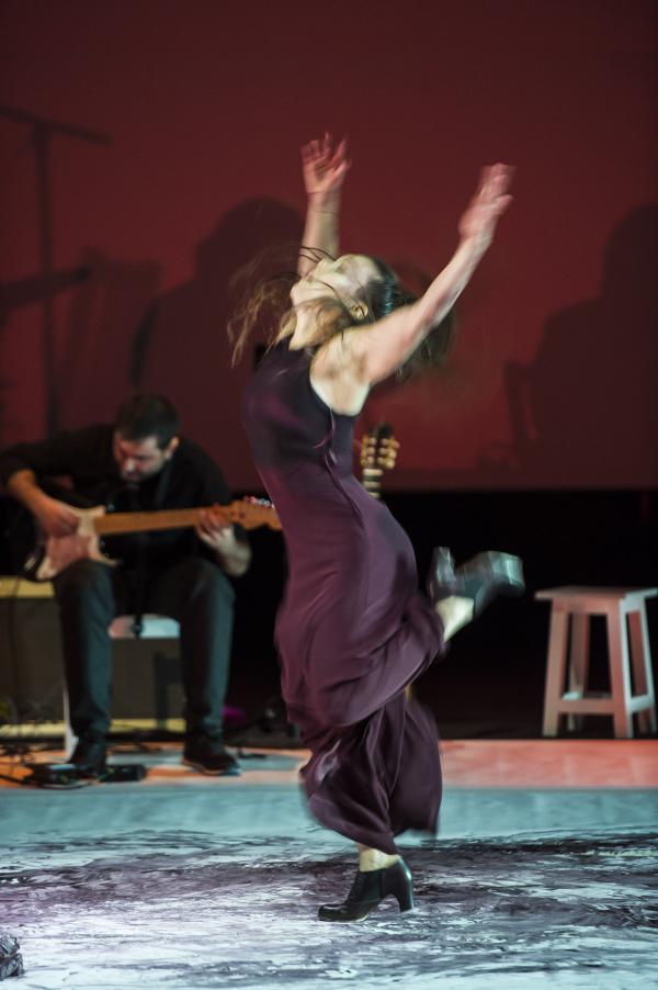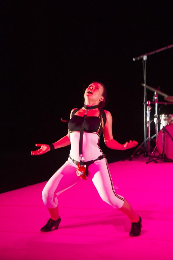 Et c’est bien la question de ce spectacle ébouriffant : quelles sont les images de la féminité actuelle ? Et surtout que véhiculent-elles ? Les références (sues ou insues) au butô et à Eve ne sont peut-être pas si innocentes, car chacune d’elles charrie à même la chair la question du pur et de l’impur. S’agissant du flamenco, la question ne manque pas d’audace, sachant que le mot « puro » s’y associe presque comme un syntagme figé. C’est bien par là qu’elle commence, transformant le genre en quasi concert de rock tandis que sa danse marque les pas au son d’une basse électrique et d’un set de percussions vrombissantes. Après tout, pourquoi l’électrification ne serait pas le renouveau révolutionnaire du flamenco ?