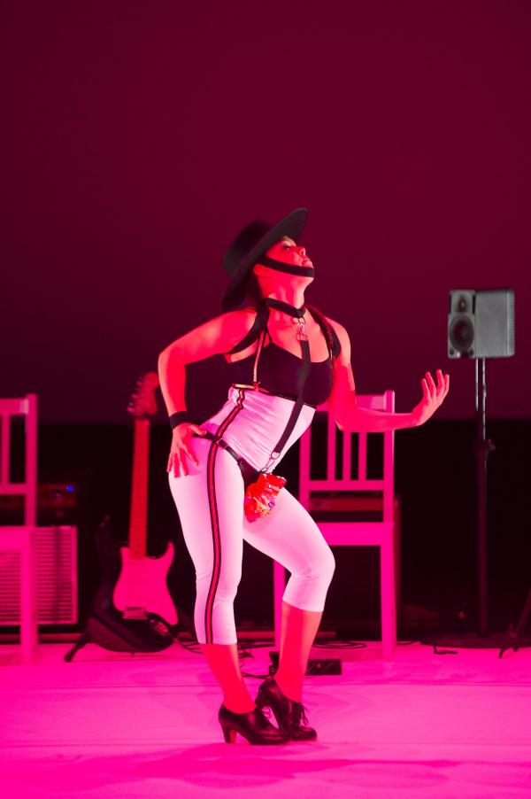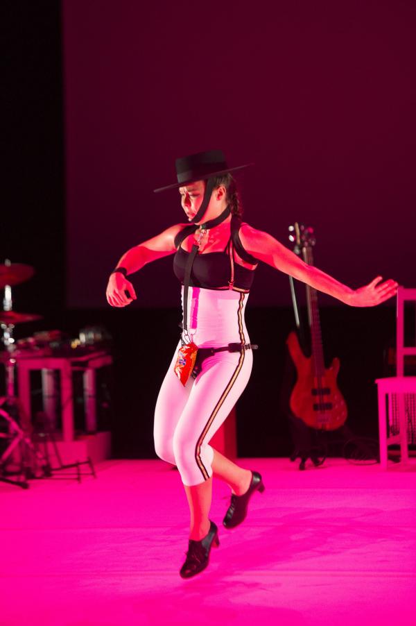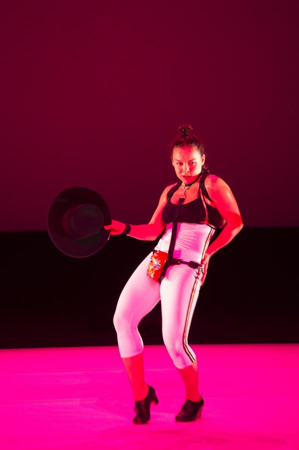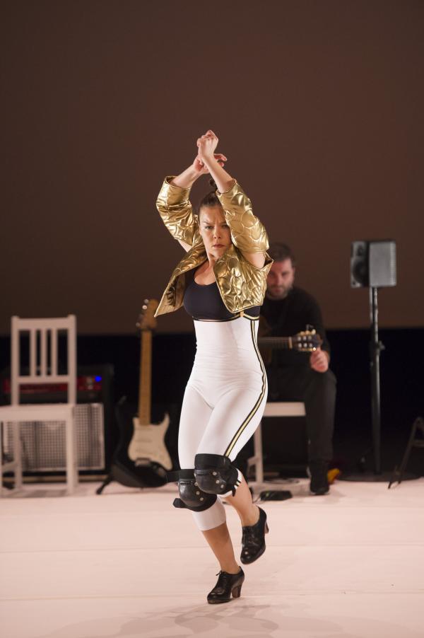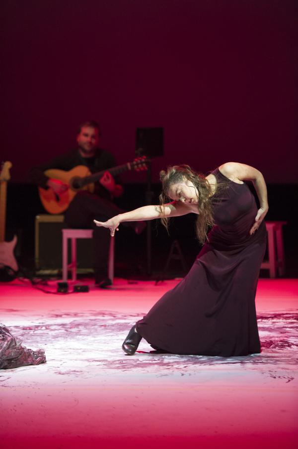 Ensuite, elle endosse les habits divers et variés de figures d’une féminité dont elle se débarasse à chaque fois comme autant d’oripeaux : torera, maîtresse SM décochant des banderilles, boxeuse, ondine sortie du sang et des larmes. Oscillant entre un mauvais goût certain, et de sublimes images, entre un narcissisme radical et une sauvagerie plutôt casse-cou, Rocio enchaîne des zappateados miraculeux, frappés avec une énergie à tout casser et une technique impeccable.