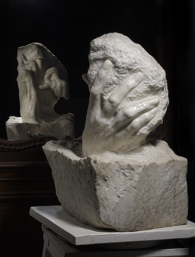Quand Bruno Ferrari, du musée de Gand, évoquant les liens du poète Verhaeren et de Rodin, parle de l'attrait de celui-ci pour les postures de Dante (comme Beckett qui est un Rodin inversé avec les minces personnages de ses films) il ouvre la réflexion suivante. Rodin ne se limite pas à exposer des figures tourmentées. Certaines surgissent d'un socle presque informe, peuplé de forces se brassant les unes les autres. Une sorte d'ouragan de pierre. La main de dieu nait du tohu- bohu d'un sol de marbre. La pierre, dans ses entrailles, génère le surgissement d'une main.
