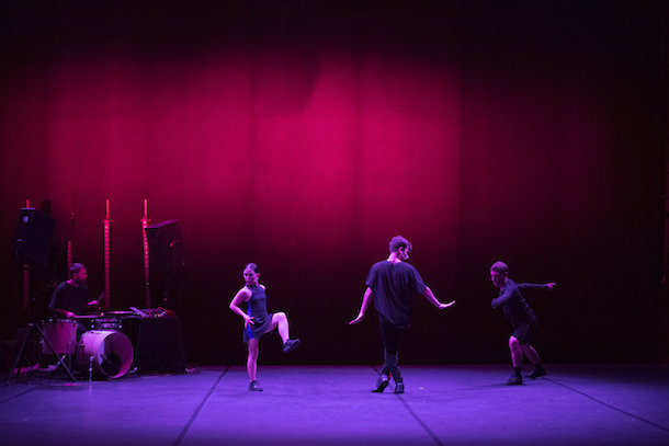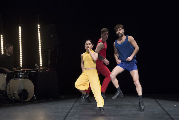 Voilà ce qui ne se produit pas dans Rule of Three. Si bien qu'à la longue, les joyeux martèlements du sol, chaloupés de bassins chatoyants, et balencements cadencés des bras, trahissent une inconsistance plutôt navrante. Il est jusqu'à la morphologie rutilante et satisfaite des deux interprètes masculins, pour agacer dans cette affaire. Cela d'autant qu'ils écrasent une partenaire féminine pourtant pleine de trempe, mais que sa très petite taille handicape dans son impact, alors que ce répertoire gestuel laisse peu d'opportunités à une affirmation de quelque intérêt. Puis tout cela cesse. La pièce pourrait sembler terminée.