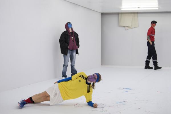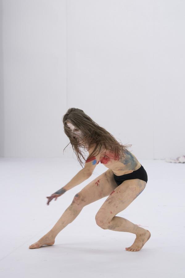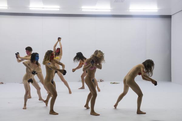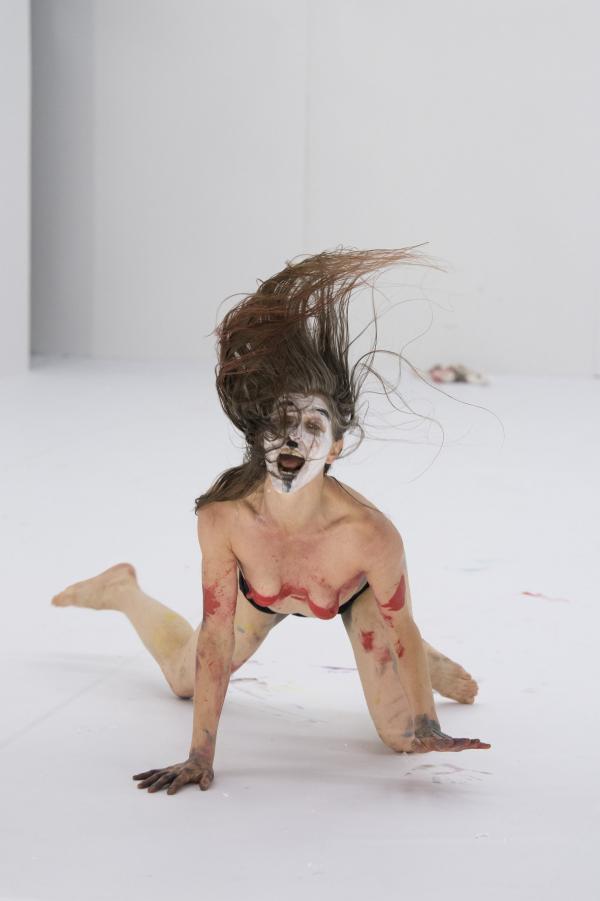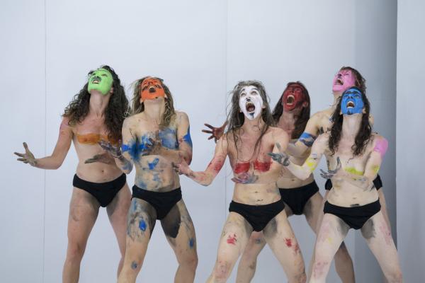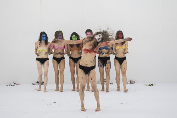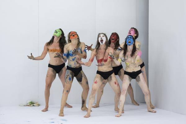 Elle font également un recours intensif à des peintures colorées, pour se profiler en tribu préparant le rituel. Mais le maquillage est à ce point sommaire, débordant de toutes parts, qu'il en vient à brouiller toutes les prétendues évidences des signes sexués normatifs. Sous les applats, les coulures, les dégoulis, une bouche, une paire de seins, une toison pubienne virent dans une dés-indexation, une déterritorialisation, une désarticulation du code culturellement élaboré et du signe bio-organique qu'il est censé nomenclaturer. Saison sèche fraye alors pleinement en indiscipline.