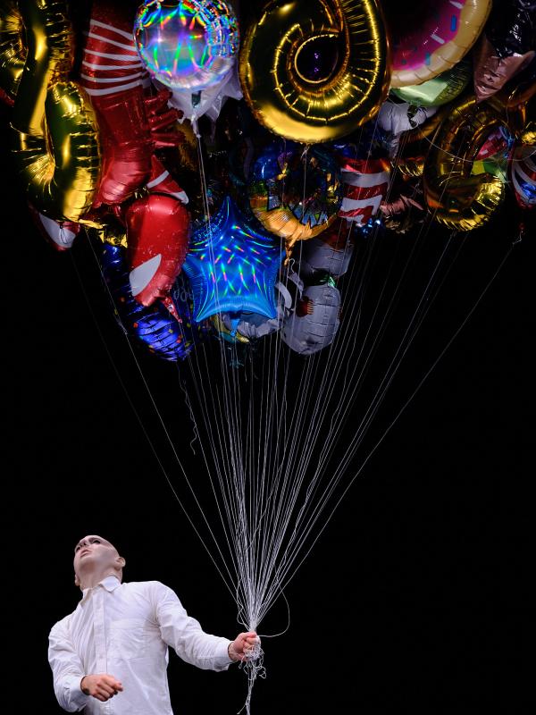 Ballons de fête, de baudruche, gonflables à l’hélium, à tête de Mickey ou en forme d’animal, en chiffres ou lettres, et surtout en couleurs : ils font le bonheur des enfants à la fête foraine, à Disneyland, ou pour la fête d’anniversaire. Ils font aussi d’intenses souvenirs d’enfance pour Philippe Saire, mais le chorégraphe suisse émet un bemol qui est toute la raison d’être de cette création. Car ces ballons peuvent aussi faire peur, comme le clown peut de son côté effrayer les enfants.