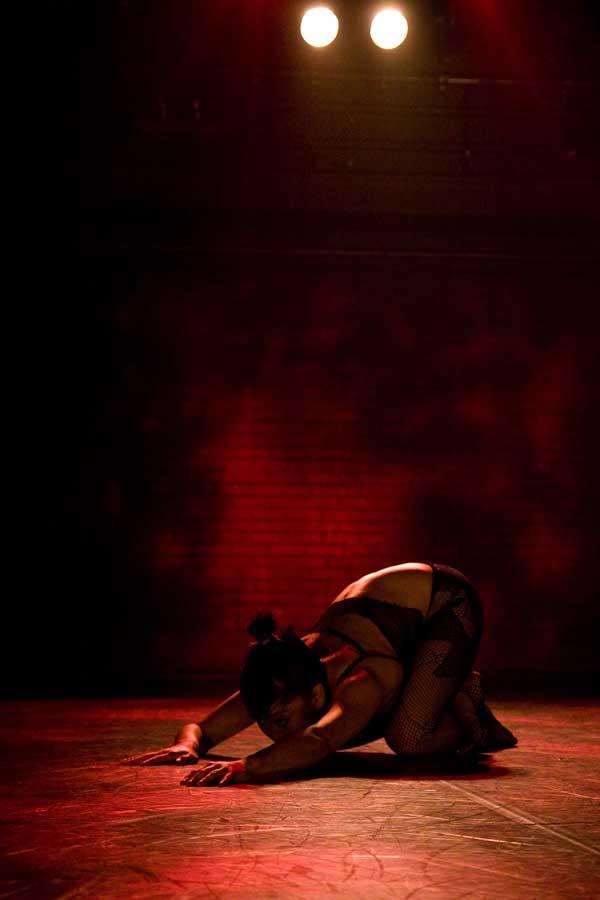 Le Gungji-Dilemma de cette Amazone passe tel un ouragan. Son costume rappelant des dessous, jouant avec l’idée d’un show érotique, prend des allures d’armure ou de peau de serpent. Elle se frotte au sol qui devient surface pour projections, entre ballet, arts martiaux, animalité, compétition sportive et marche sur les mains. Sa présence et son athlétisme impressionnent, sans que le propos devienne très lisible. Mais ses identités possibles et multiples sont toutes au service d’une étude de caractère passionnante.
