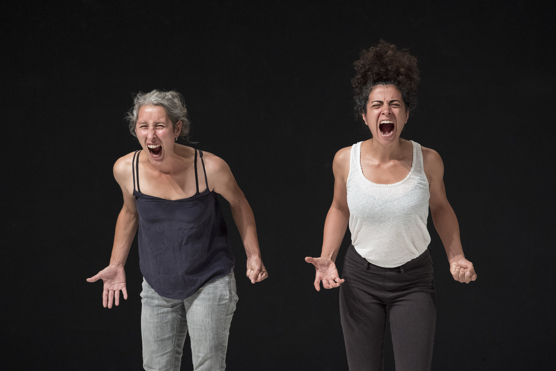 La danse montre ici tout son potentiel de résilience, sa souplesse et sa capacité de s’adapter aux circonstances les plus adverses. Hammoud et Youcef reviennent aux fondamentaux, au corps et à la voix, dans une forme contemporaine de la tradition du conteur, sans recourir aux médias, sans transformer leur rite contemporain en spectacle-conférence. Les corps et les voix partent d’un seul et même engagement du sensible, où le récit est aussi chorégraphique que la danse sait créer des images. Quand les deux protagonistes se figent à nouveau, en légère torsion et le buste penché en arrière, surgit un tourbillon suspendu, tout aussi strident et vertigineux que le cri muet l’accompagnant.