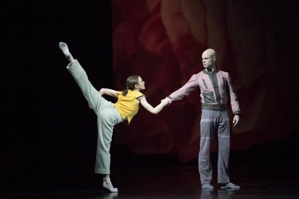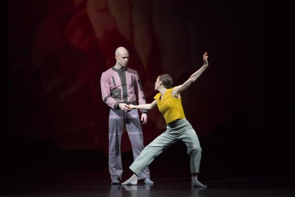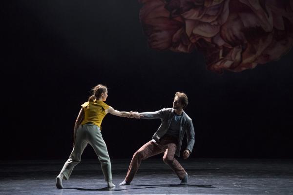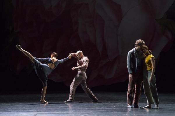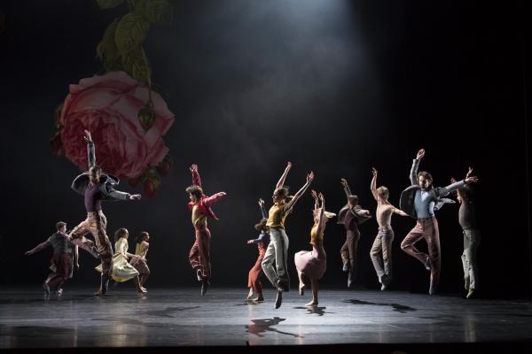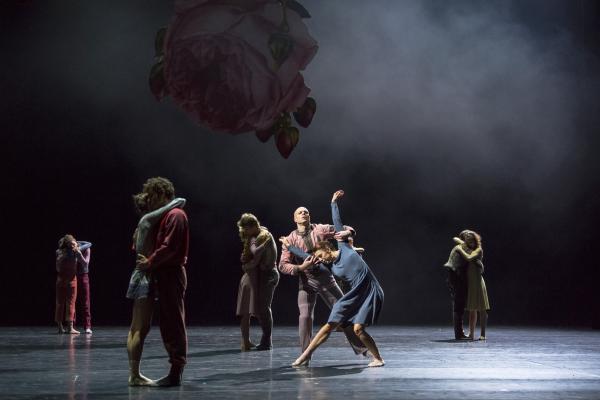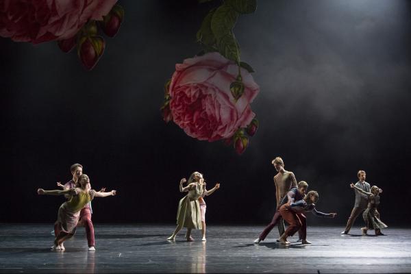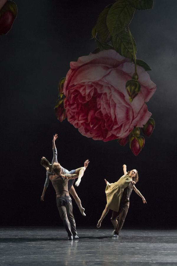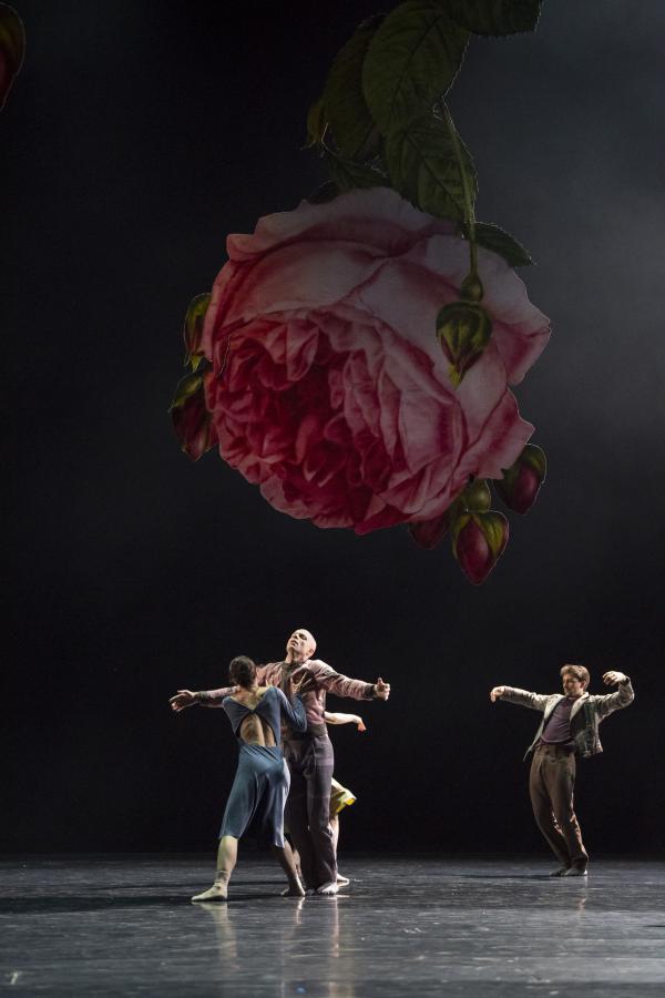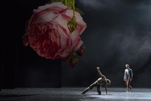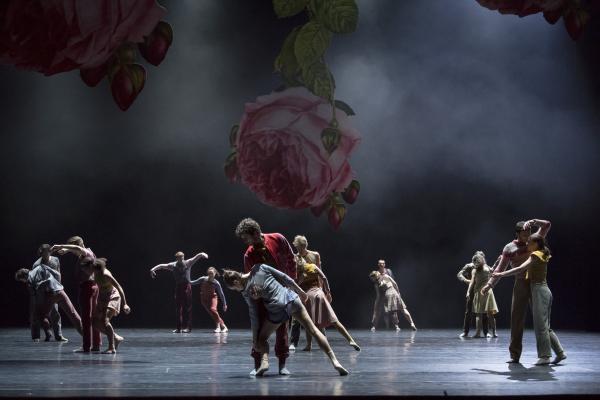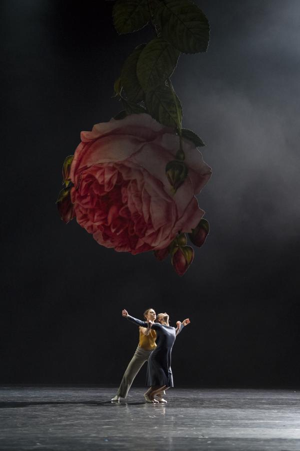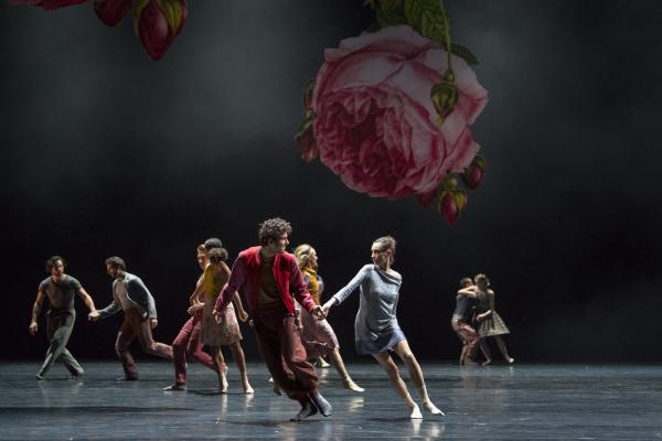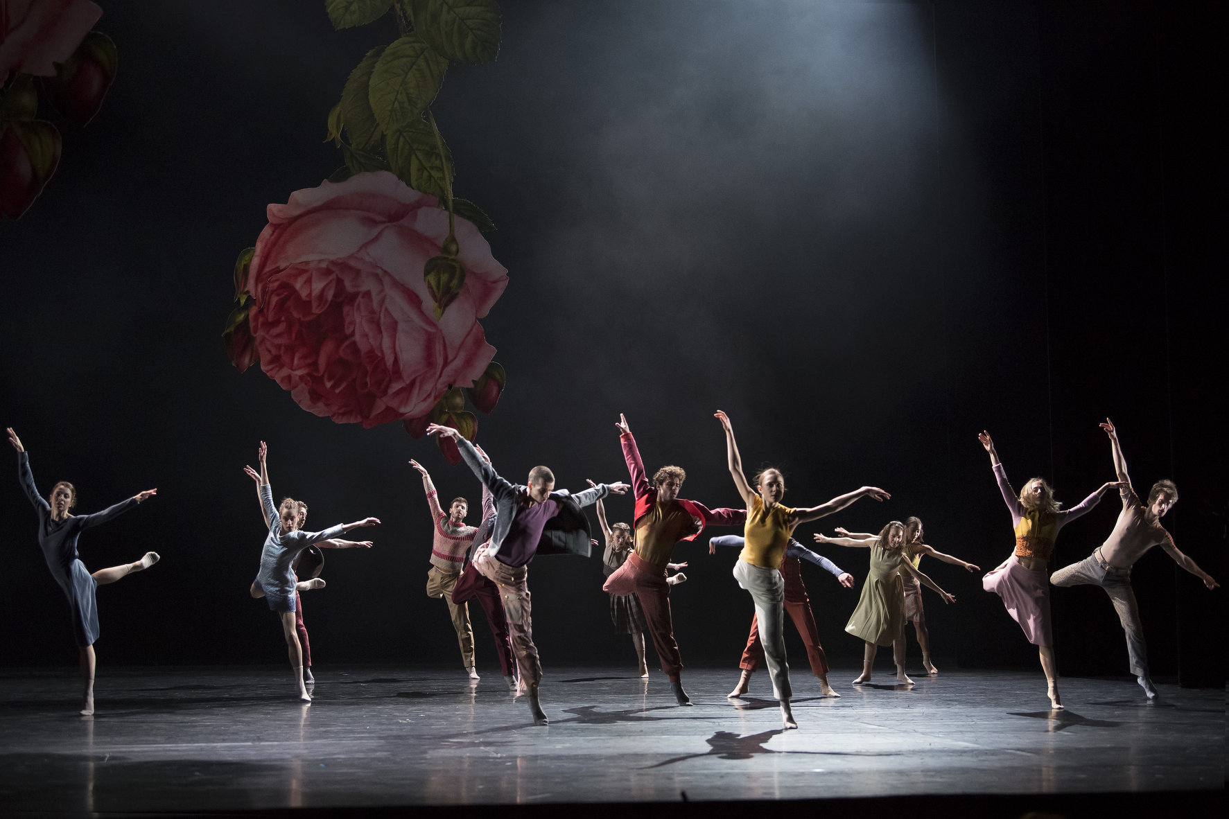 On était alors curieux de voir comment Pontus Lidberg allait rebondir sur Les Noces de Stravinsky et nous livrer sa vision de « ce que l’idée de noces, de mariage, peut signifier aujourd’hui », en écrivant une pièce chorégraphique volontairement détachée des versions qui se placent dans un dialogue avec la chorégraphie originale de Bronislava Nijinska de 1923. Las ! Hormis le fait d’unir, parmi les dix-huit interprètes, quelques couples du même sexe, Lidberg semble s’être inspiré avant tout de West Side Story. La partition, portée par quatre chanteurs solistes et un chœur, paraît alors infiniment plus actuelle que la chorégraphie, basée sur des entrées et sorties incessantes. Des couples et groupes se forment et se séparent et des paravents ferment et ouvrent au regard des pans du plateau alors que descendent et remontent d’énormes tableaux représentant des roses en fleur ou à éclore.