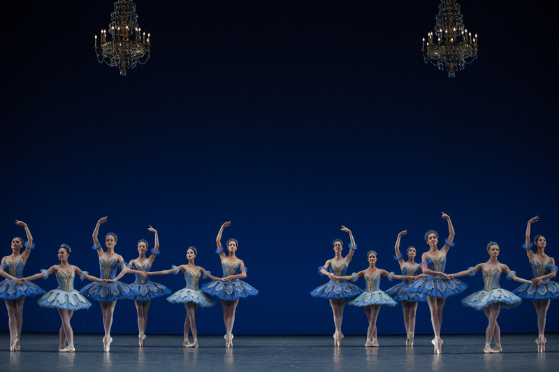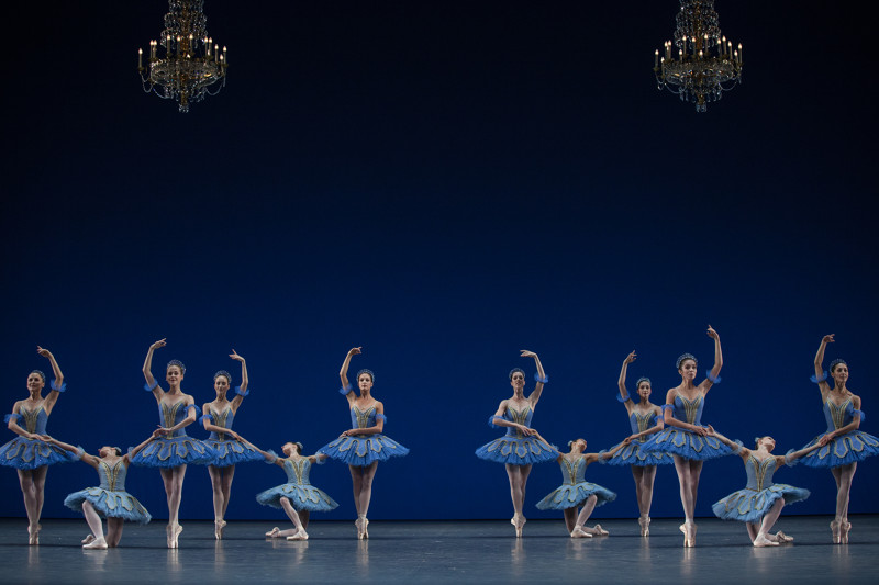 Très inspiré de Petipa, Thème et variations, on l’a dit, a quelque chose de désuet et au fond, de très américain dans sa volonté de faire plus vieille europe encore que l’originale. Il faut dire que créer un ballet du XIXe siècle en 1947 n’est pas chose aisée, surtout que Balanchine y met un sérieux imperturbable.