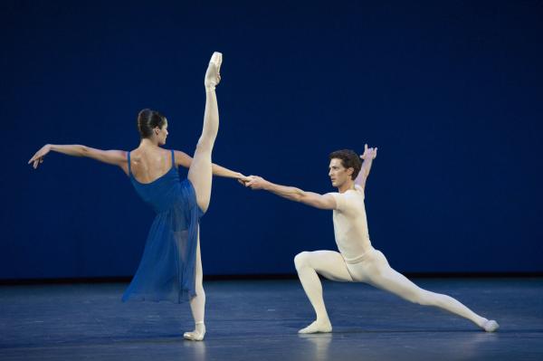 Ce ballet de Jerome Robbins que Millepied dansa au NYCB est une sorte de rêverie volatile qui contraste avec la pièce précédente dans son économie de mouvements. Sur le superbe Concerto pour violon no 1 en ré majeur de Prokofiev, le ballet distille une atmosphère de rêve mélancolique. Mathieu Ganio (le rêveur) fait surgir Amandine Albisson (la Femme) de ses rêves. Autour d’eux, un ensemble réduit de danseurs compléte cette ambiance évanescente où le drame semble embusqué dans le voile bleu qui enveloppe les danseuses. Les deux étoiles donnent toute leur mesure dans cette pièce où les lignes sinueuses de la danse épousent le violon de la partition.