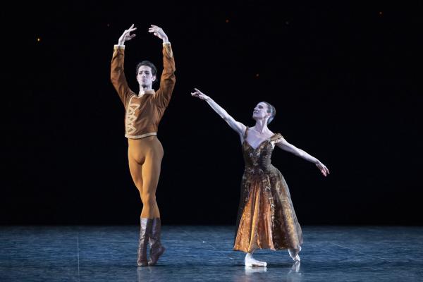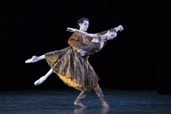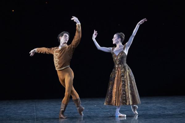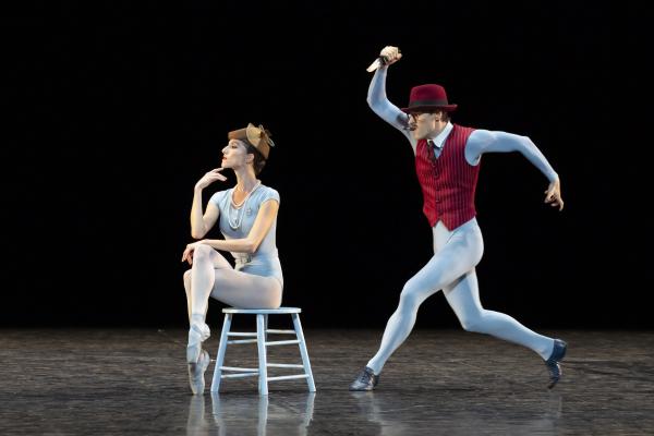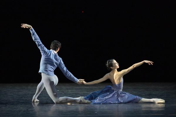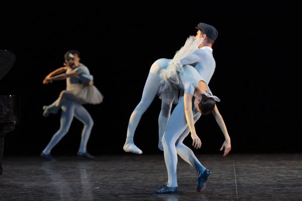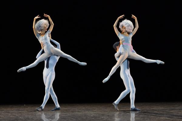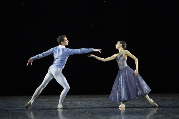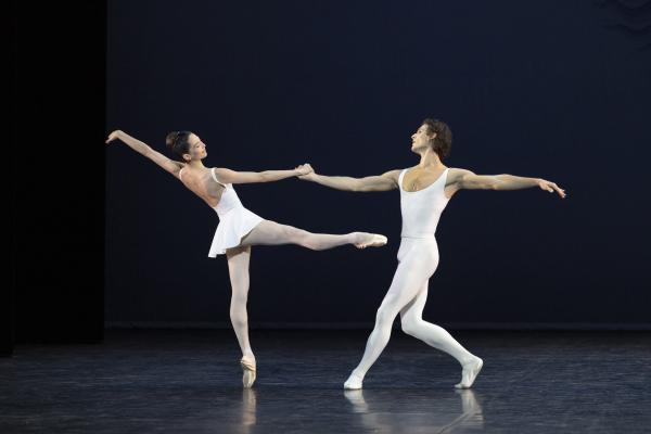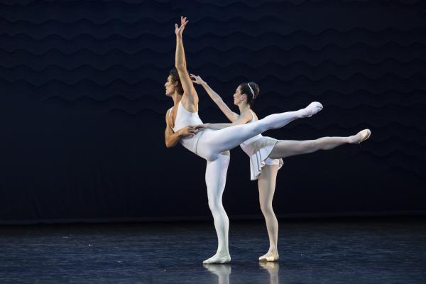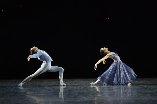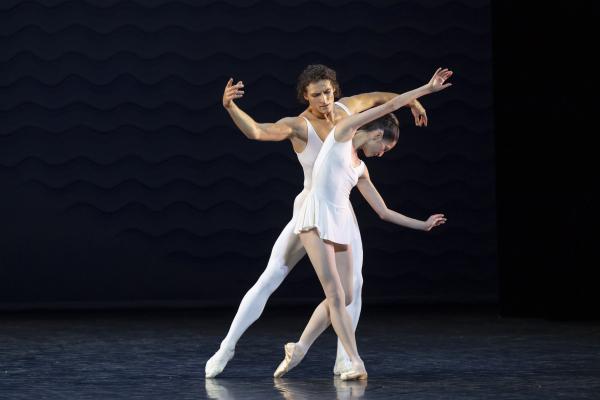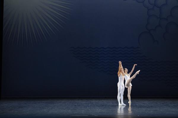 Avec la rapidité de ses tours et la légèreté de ses sauts, la chorégraphie prend son envol dans une sorte de double classique de l’ouverture de West Side Story quand les interprètes passent subrepticement d’une marche ordinaire à une danse des plus élaborées. Le deuxième mouvement, un duo élégiaque porté magistralement par les étoiles Hannah O’Neill et Hugo Marchand, joue comme contrepoint parfait à l’allégresse du début. Après les déhanchements et les battements très graphiques d’une jolie nageuse en blanc (Hannah O’Neill), quand Hugo Marchand entre, il a la grâce d’un Apollon et la sensualité du faune d’Afternoon of a Faun signé du même Robbins. Les simples menés d’Hannah O’Neill sont miraculeux. Portés renversés, figures suspendues, pas glissés, passages en-dehors/en-dedans et enchaînements techniquement démoniaques font de ce duo un moment unique.