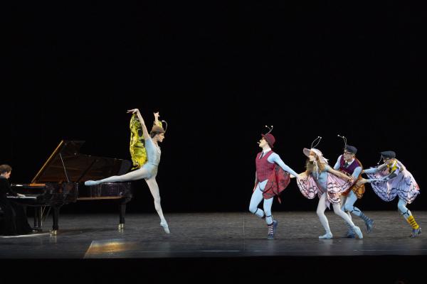 Parapluies surréalistes et cavalerie Hongroise participent de ce ballet échevelé, et pourtant si exigeant. Les danseurs et danseuses sont exceptionnels, la Ballerine (Léonore Baulac), le mari (Arthus Raveau), et la femme (Héloïse Bourdon), la fille en colère (Marine Ganio) tenant les rôles principaux avec un entrain et une folie bienvenue. Mention spéciale à la pianiste Vessela Pelovska qui joue, aux deux sens du terme, son rôle à merveille.