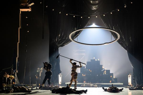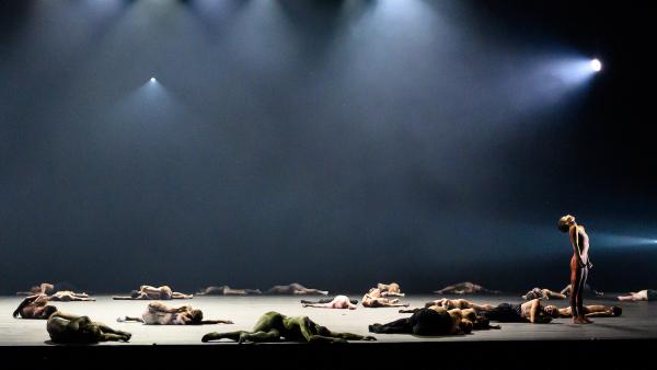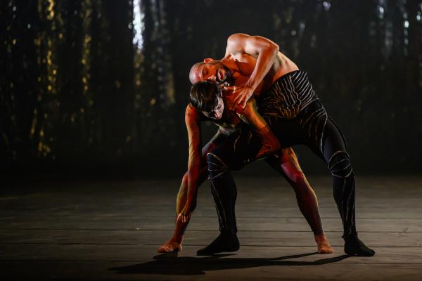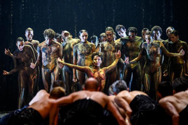 Montero réussit à merveille les grandes envolées, les grands mouvements d’ensemble où les danseurs et danseuses traversent le plateau comme des nuées d’oiseaux. La danse est fluide, limpide, contrastée. Anna Blackwell et Christian Assis forment un couple antagoniste qui sert parfaitement le récit. Mais sans épreuves, il n’y aurait pas de conte, il est donc aussi question d’affrontement, de domination, d’invasion, de trahison, de destruction… À la moitié de la pièce c’est un plateau vidé qui s’offre aux regards, les rideaux miroitants sont arrachés, la luxuriance évanouie, métaphore de la destruction de la forêt équatoriale et plus largement de notre planète.