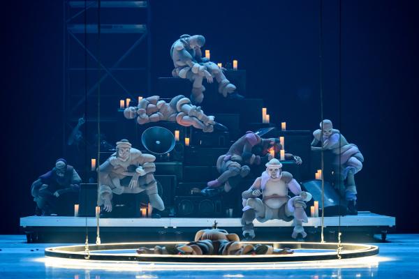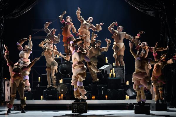 Deux groupes constituent l’intrigue du ballet, l’un vêtu de noir, l’autre de tons clairs, les uns étant les « fantasmes » des autres. Leurs costumes signés Charlie Le Mindu sont pour le moins étranges tant l’aspect grotesque est exacerbé – boursoufflures, bosses et autres protubérances envahissantes – et ne permettent pas une lecture facile de la danse. Il faut toute l’amplitude et la précision des interprètes – qualités dont nous ne doutions pas qu’ils les possèdent mais vraiment remarquables ici – pour faire ressortir la chorégraphie.