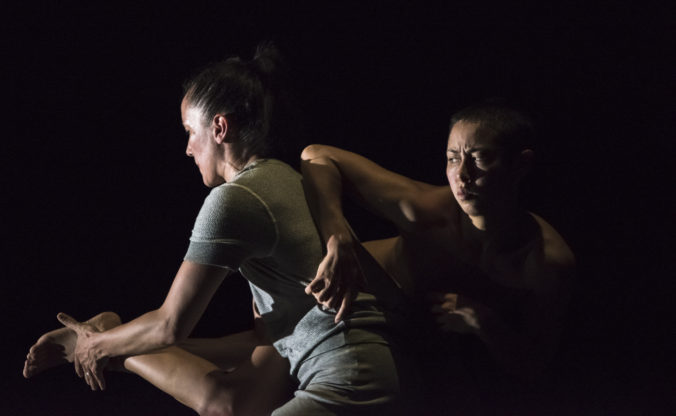D’où Split… et d’autres pièces de Guerin qui interrogent notre relation aux éléments et au climat (Weather, Microclimate). Mais cette chorégraphe travaillant à Melbourne dévoile des facettes très différentes de son créativité, dévoilées en France dans son intrigant Motion Picture montré au Théâtre des Abbesses en 2017 et son bouillonnant Attractor, adapté pour le dernier programme de Josette Baïz [lire notre critique] qui ne s’est pas trompée en confiant à Guerin le point d’orgue de D’Est en Ouest. Malgré la différence des formats, on retrouve à chaque fois le même sens de Guerin pour une écriture du geste extrêmement précise, incisive et chargée.